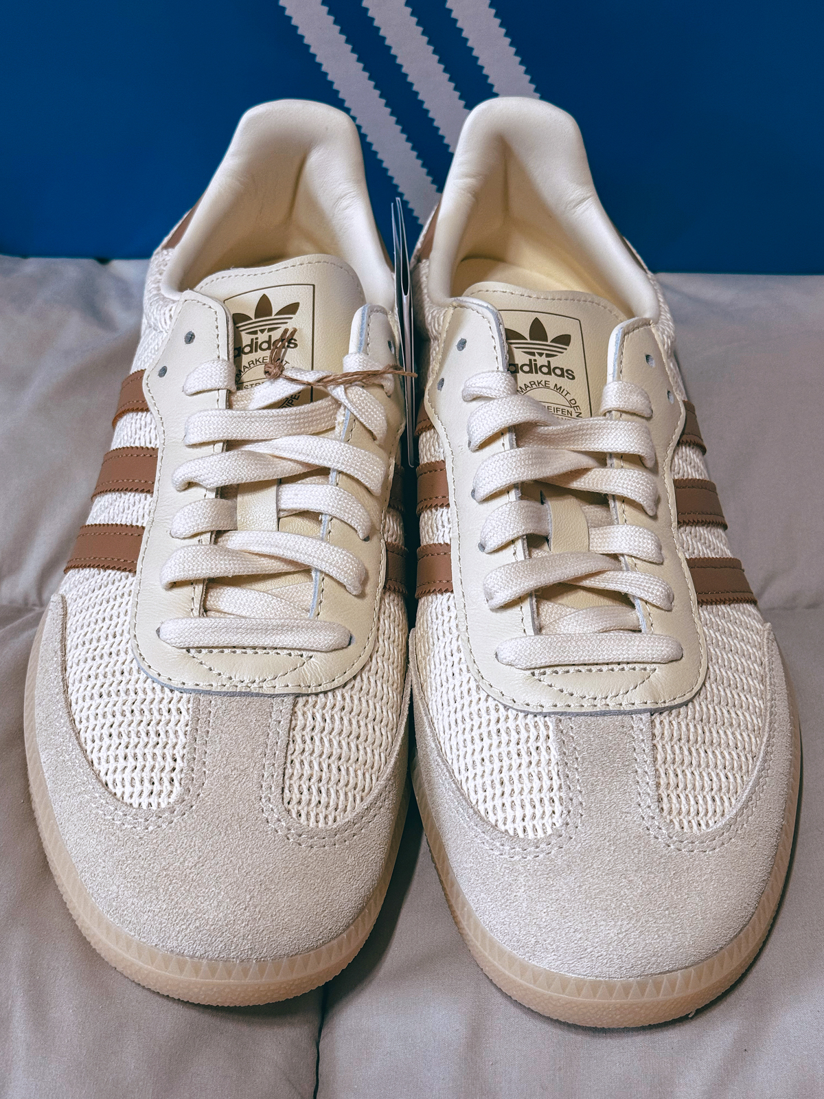 최근 무신사를 구경하다가 여름철에 신기 좋은 메쉬 갑피로 제작된 아디다스 OG 크림화이트를 보고 베이지, 그린, 브라운 계절의 바지와 잘 어울릴 것 같아 주문했다.