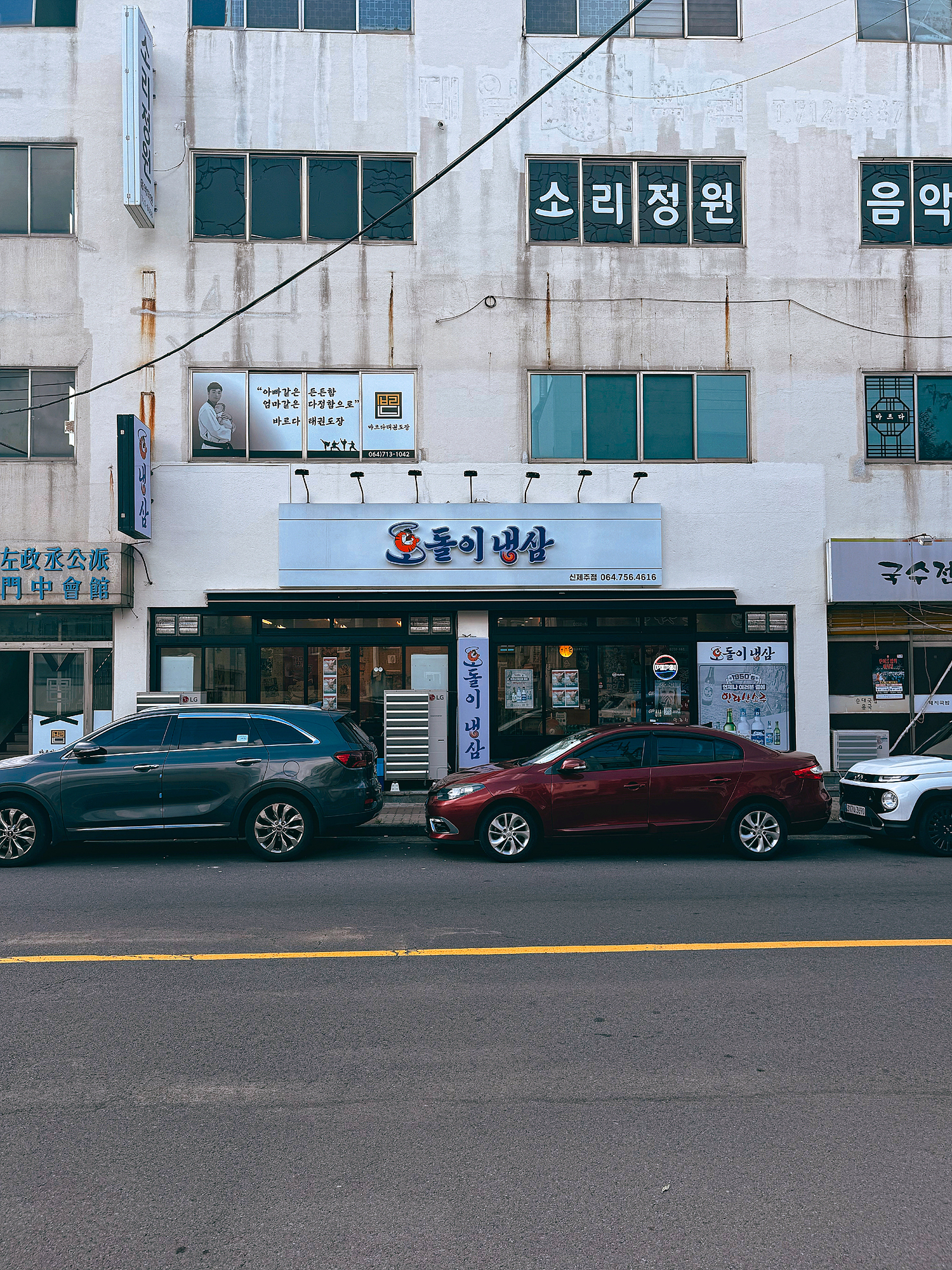 최근 방문했던 호돌이냉삼은 제주공항에서 차로 약 12분 거리인 제주시 노형동에 위치해 있으며 그랜다하얏트 제주 호텔에서는 도보로 5분이면 갈 수 있는 거리에 있다.