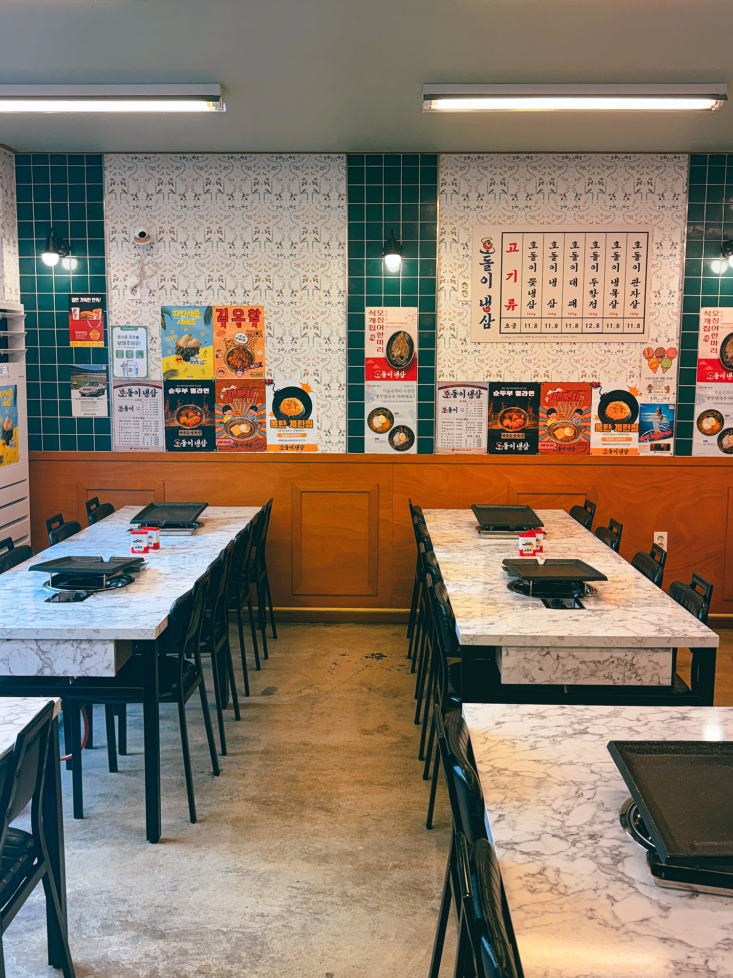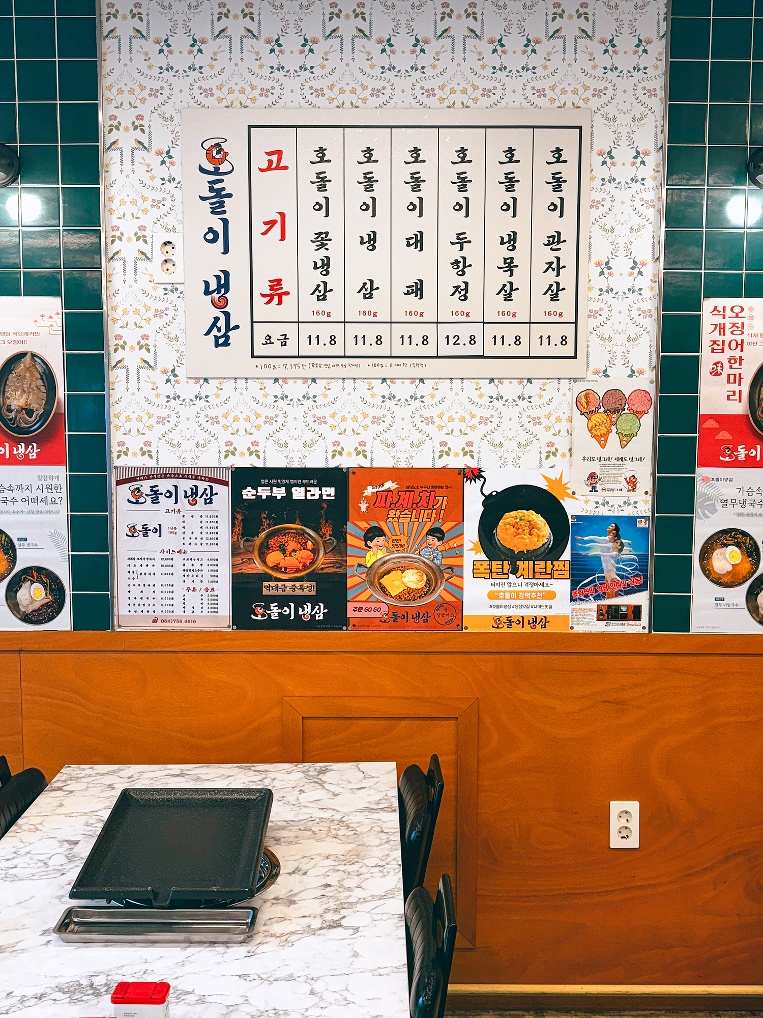 호돌이냉삼이라는 이름에 걸맞게 내부 공간에는 어린 시절 봤던 88 호돌이부터 여러 애니메이션 포스터를 소품으로 활용해 꾸며져 있어 옛 추억의 장소를 방문하는 듯한 느낌도 들었다.