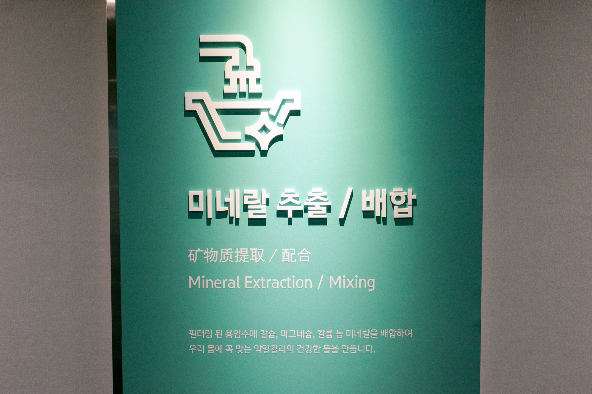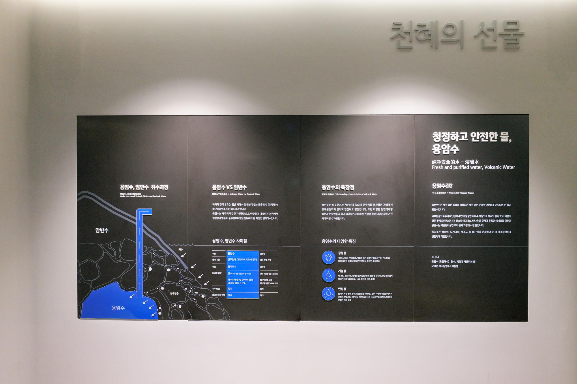 이곳에서는 용암수와 화산암반수의 취수 과정, 특징, 현무암 필터, 블렌딩 기술에 대해 시각적으로 만날 수 있으며 미네랄 추출 배합, 병 제작 병입, 포장 출하 과정 등을 세세하게 관찰할 수 있다.