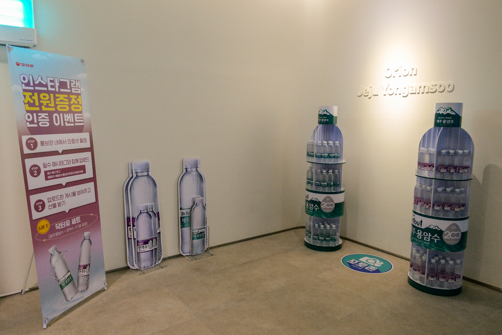 오리온 제주 용암수 홍보관과 공장은 직원이 안내해주는 길을 따라 가서 보이는 건물 2층에 있다. 참고로 홍보관 방문 후 인스타그램에 해시태그와 함께 인증샷을 올리면 닥터유 용암수를 서비스로 받을 수 있는 이벤트도 진행 중이다.