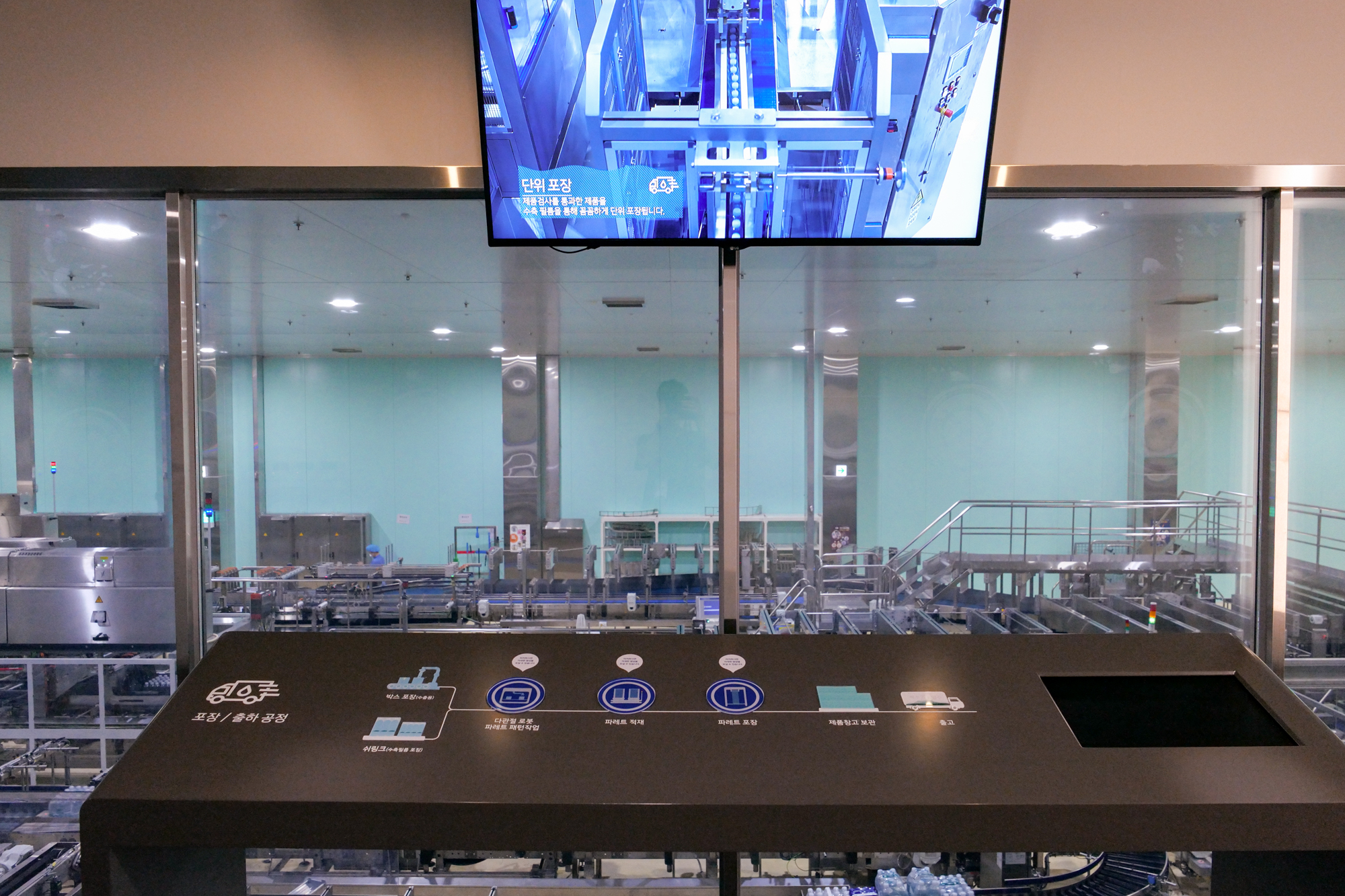 제주 동쪽 가볼만한곳 오리온 제주 용암수 공장 마지막에는 커다란 로봇이 직접 포장하고 출하하는 과정을 볼 수 있는데 이날 공장 견학에 함께 간 아이들이 무척 신기해하며 좋아하는 모습이 눈길을 끌었다.