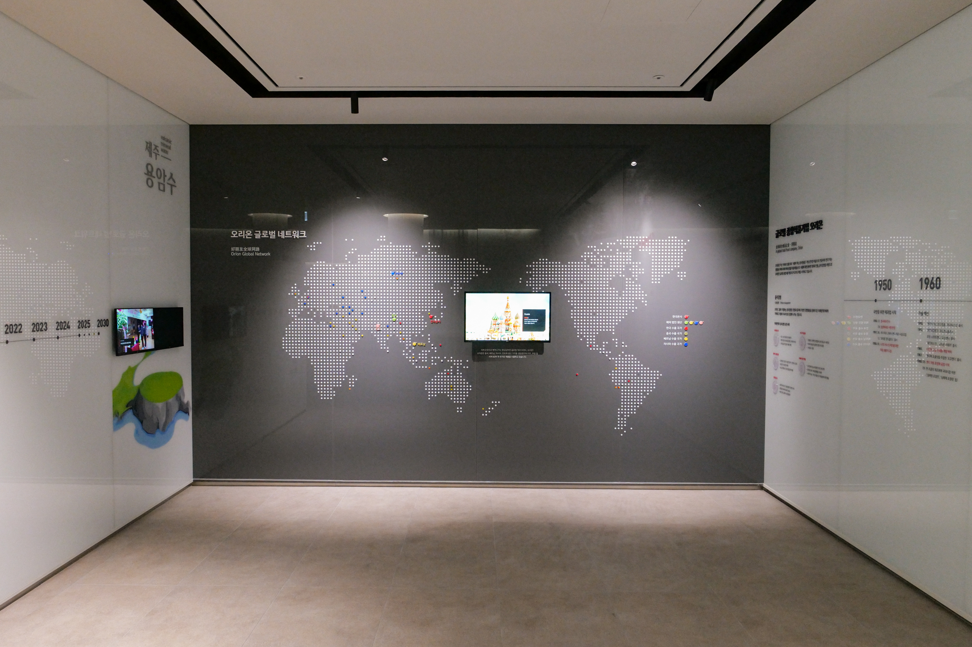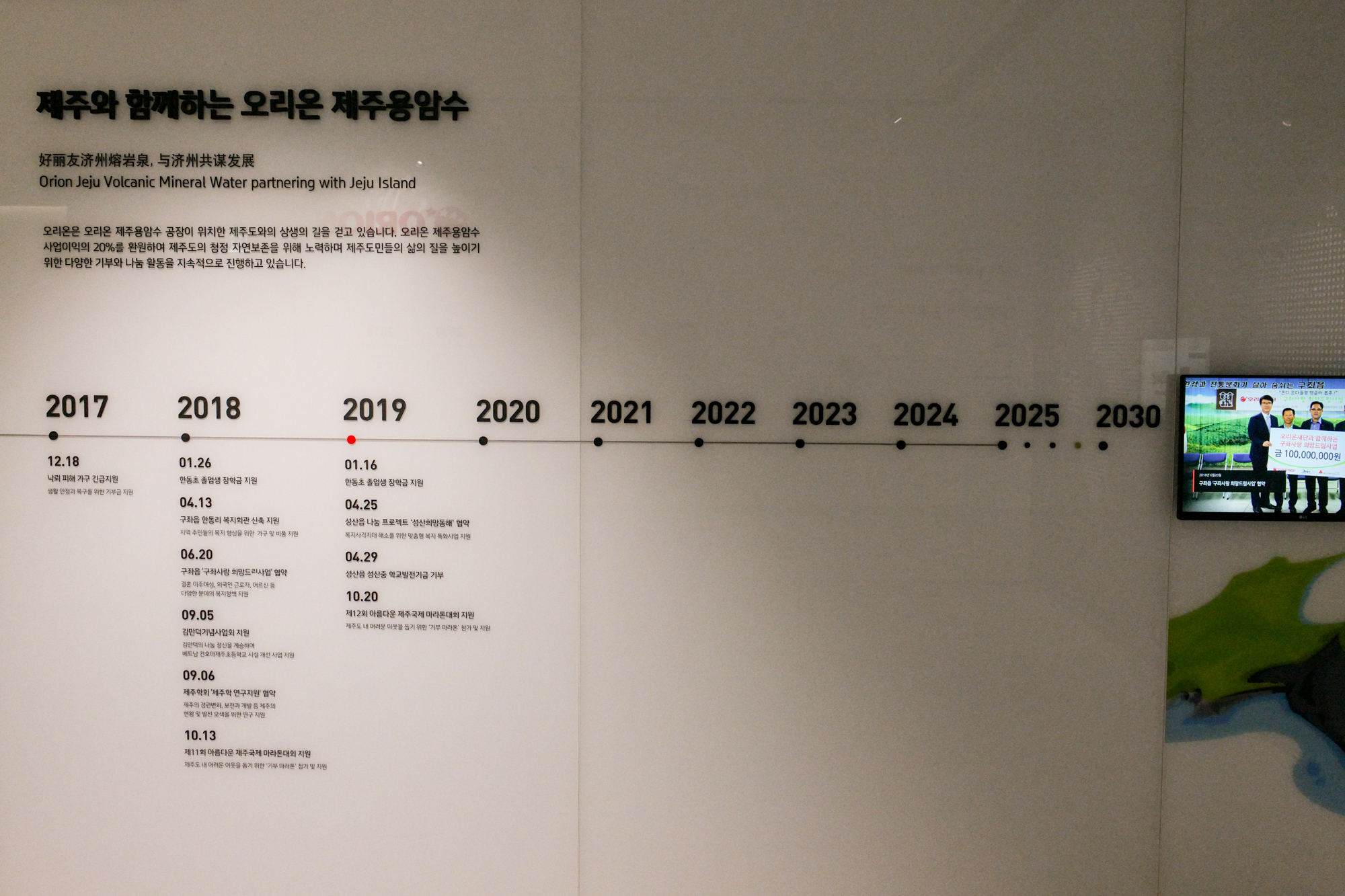 제주 동쪽 가볼만한곳 용암수 홍보관에 들어가면 오리온의 역사에 관해 상세히 안내되어 있는 전시관이 나온다.