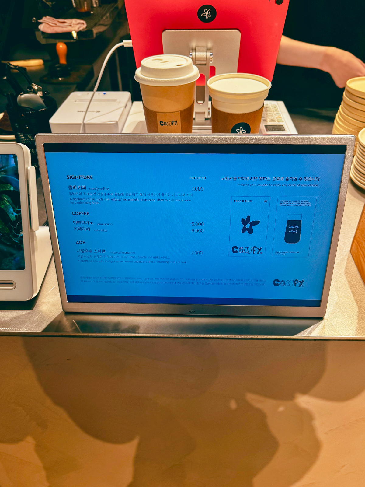 맹그로브 제주시티 컴피점에는 올버즈 매장과 함께 카페도 함께 운영되고 있으며 이날 받은 무료 쿠폰으로 사탕수수 스파클 에이드를 주문한 후 매장 내부를 구경했다.