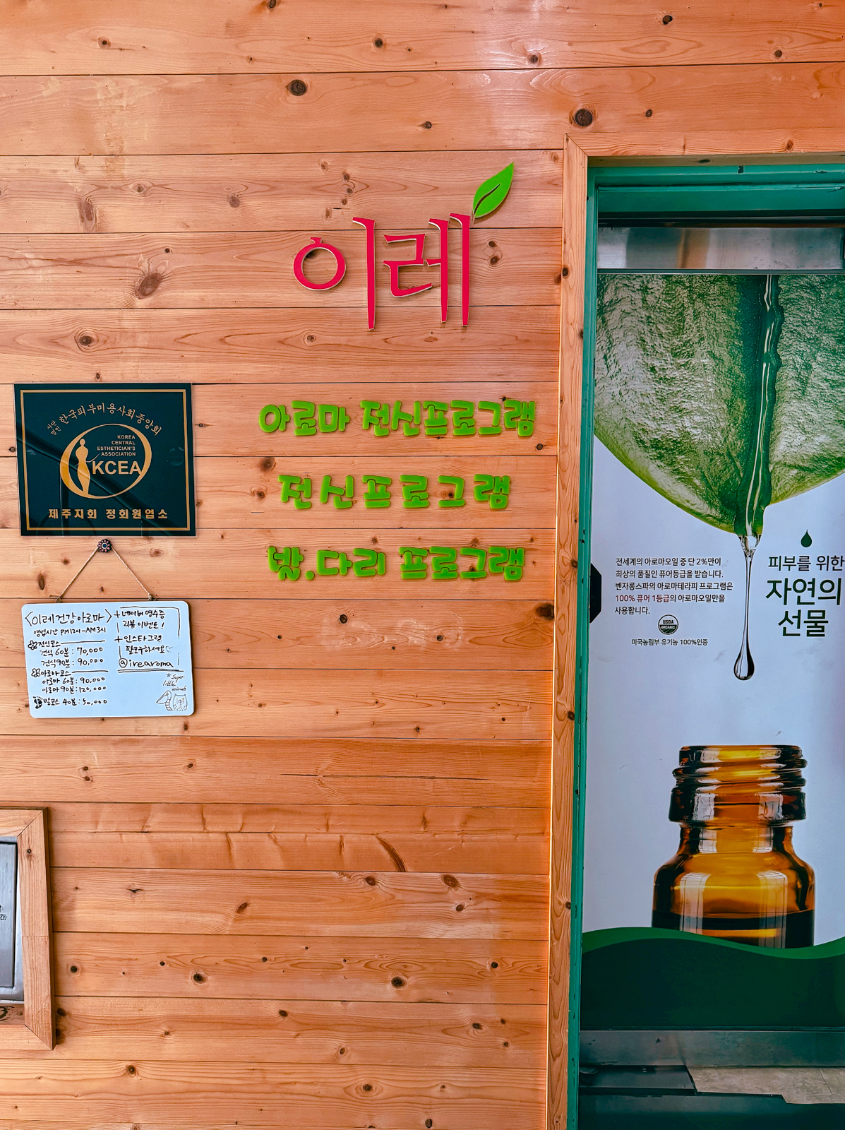 그렇게 내가 살고 있는 제주시 연동 근처에 아로마 마사지를 받을 수 있는 곳을 찾아봤더니 누웨마루거리에서 롯데시티호텔로 가는 방향에 족욕, 수소테라피, 전신관리, 어깨, 등, 다리, 발, 스트레칭까지 해주는 이레건강아로마를 알게 됐다.