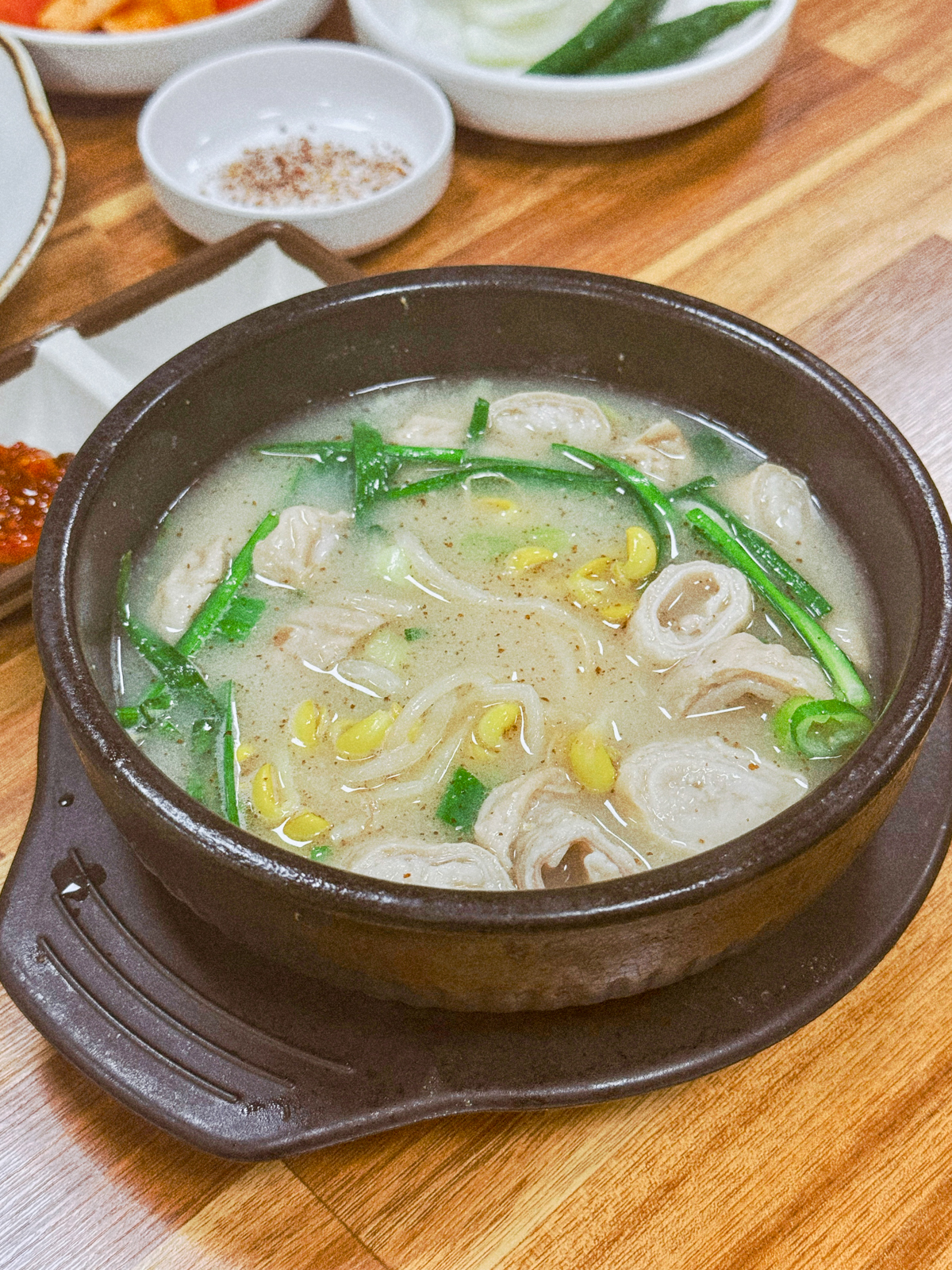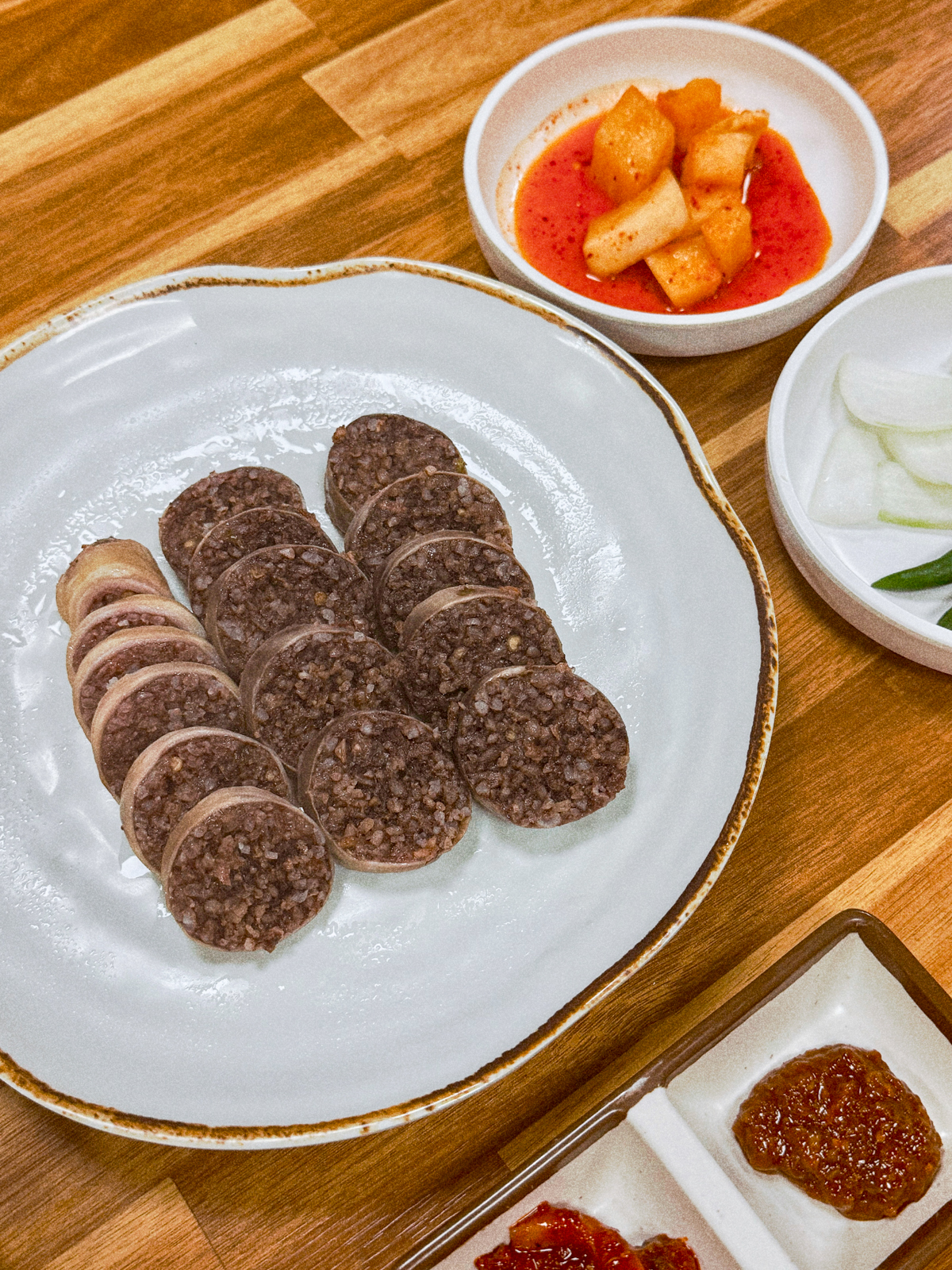 이곳에 처음 방문한 날에는 두툼한 돼지막창이 들어간 창도름국밥과 함께 모듬순대를 주문했다. 메뉴를 주문하면 곧바로 여러 밑반찬이 나오는데 사장님의 말에 따르면 모두 이곳에서 직접 만든다고 한다.