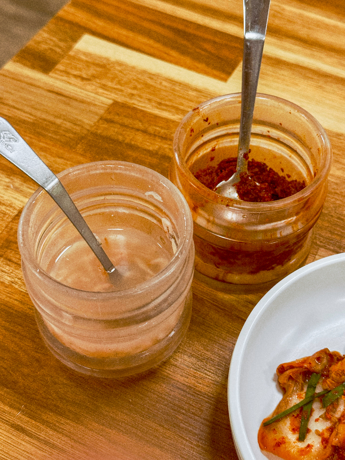 국밥에는 기호에 따라 새우젓이나 다데기를 넣고 먹으면 더욱 매콤한 맛을 느낄 수 있다. 막창국밥은 그냥 먹어도 특유의 진한 맛이 입안 가득 풍미가 전해지기에 먼저 먹어보고 새우젓을 섞어 먹어보면 된다.