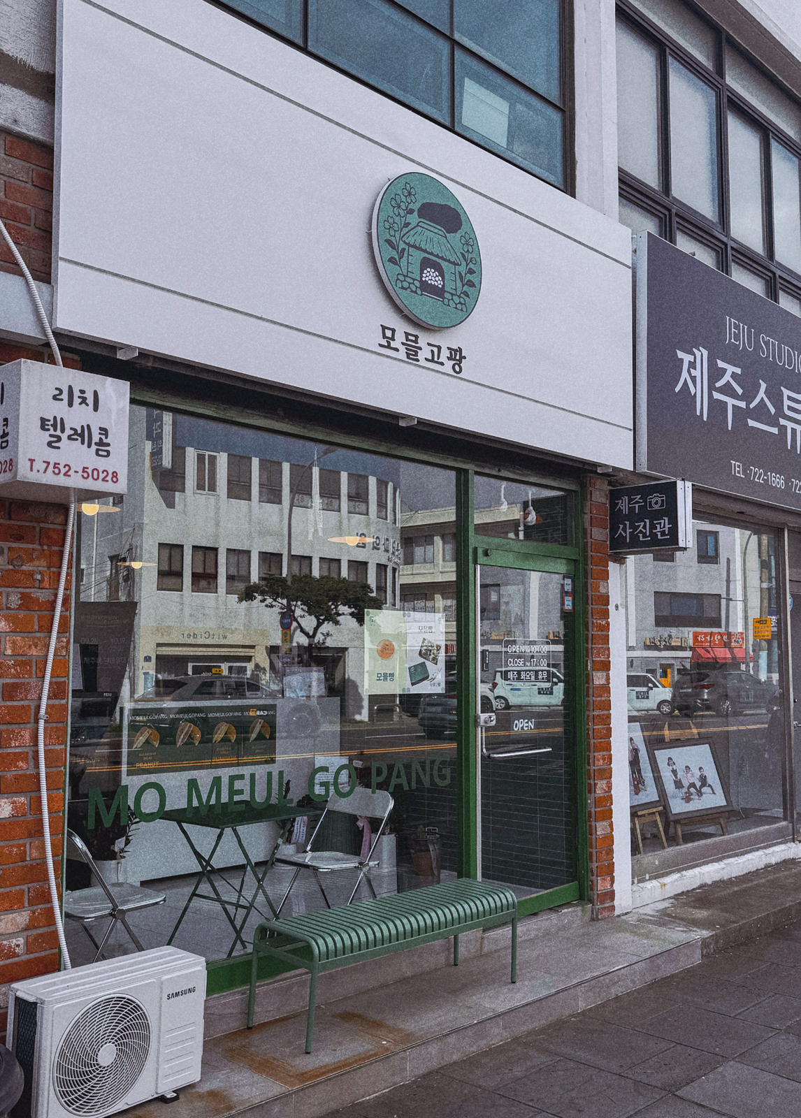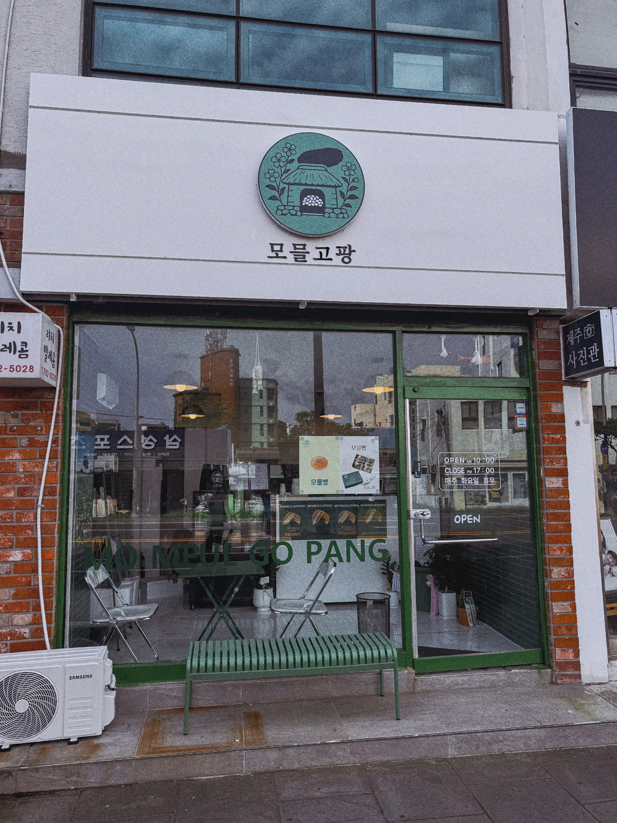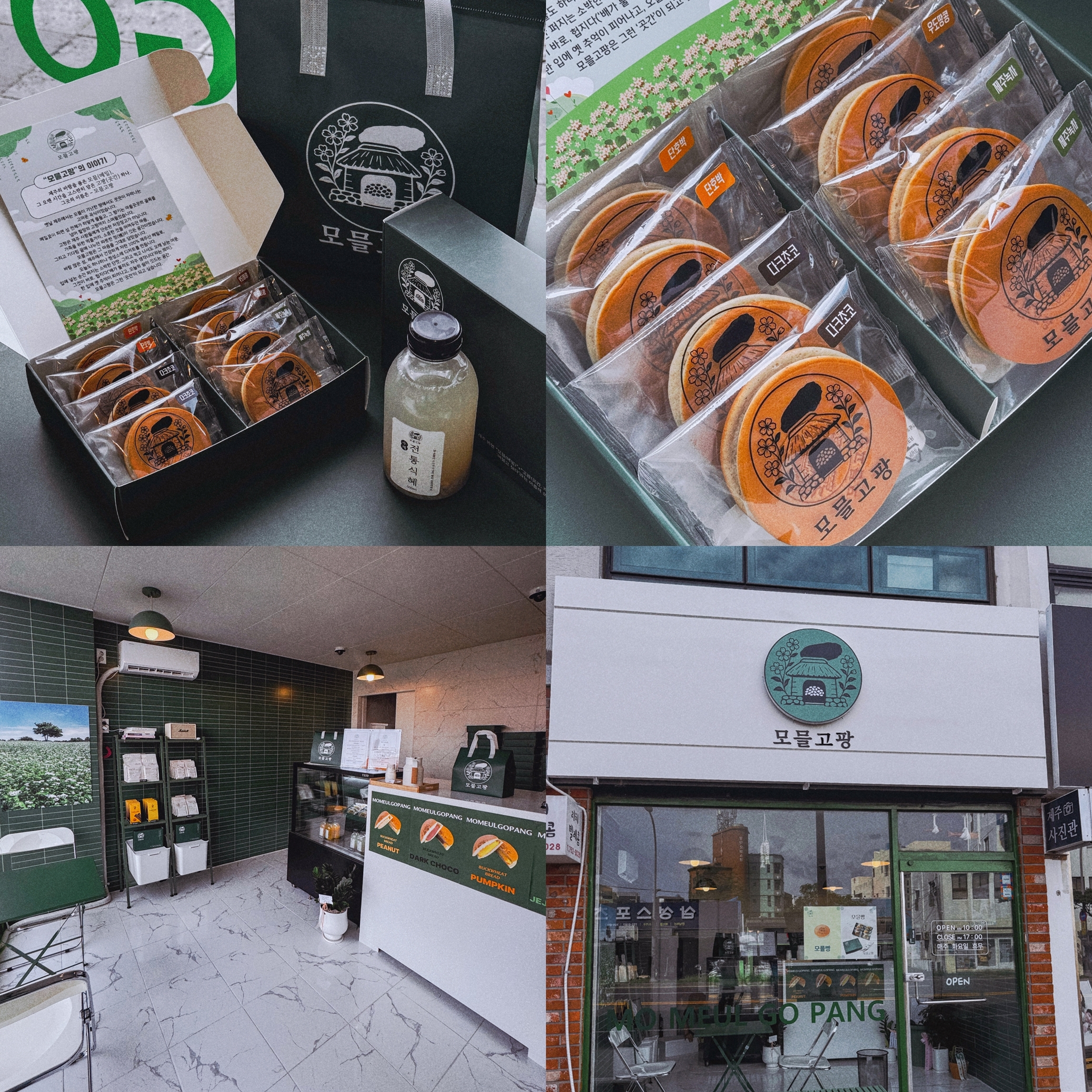 최근 새로 오픈한 제주도 기념품 추천 모믈고팡은 구축 건물에 옛 감성이 느껴지는 레트로 스타일 외관이 가장 먼저 눈길을 사로잡았고 입구 옆 창가에는 이곳에서 주문할 수 있는 메밀빵 종류와 제주 추석 선물세트 포장 디자인이 소개되어 있었다.