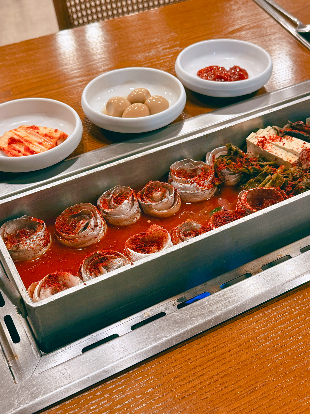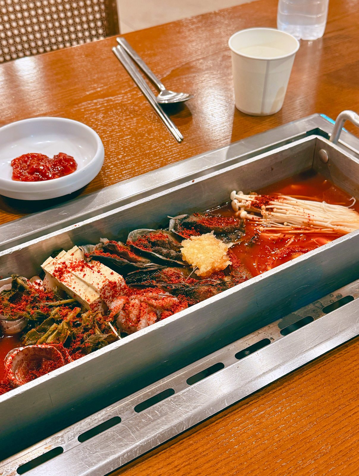 반대편에는 두부, 전복, 버섯 외 여러 야채가 나오며 직원 분이 직접 불세기를 알아서 조절해주기에 식사를 더욱 편하게 할 수 있었다.