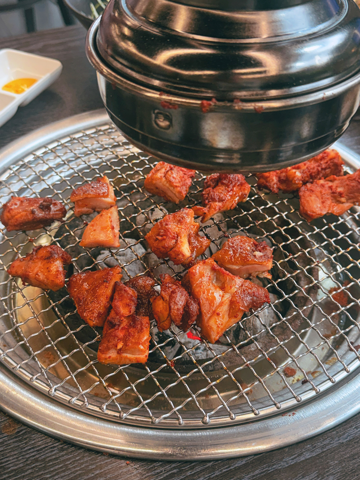 친구랑 함께 고기를 빠르게 먹고 남은 닭갈비도 곧바로 비장탄 숯불에 올려 구웠다. 특유의 수제 양념소스가 가미됐는데 평소 매운 음식을 잘 먹지 못해서인지 순한맛이 입맛에 딱 맞았다.