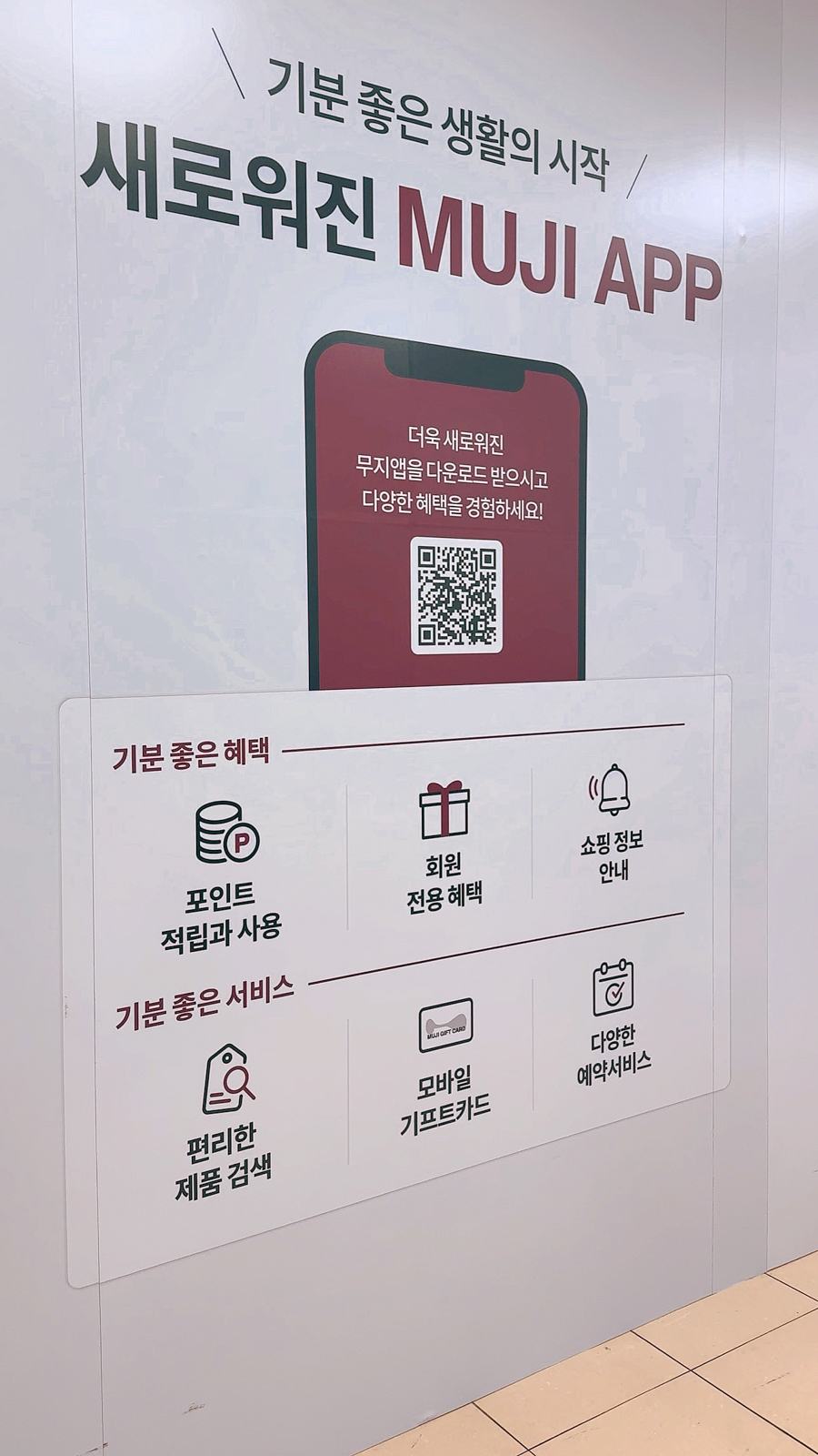 제주 무인양품은 타지역에 있는 매장과 마찬가지로 어플리케이션을 활용하여 포인트 적립, 회원 전용 혜택, 쇼핑 정보, 제품 검색, 모바일 기프트카드, 예약 서비스 등을 사용할 수 있다고 한다.