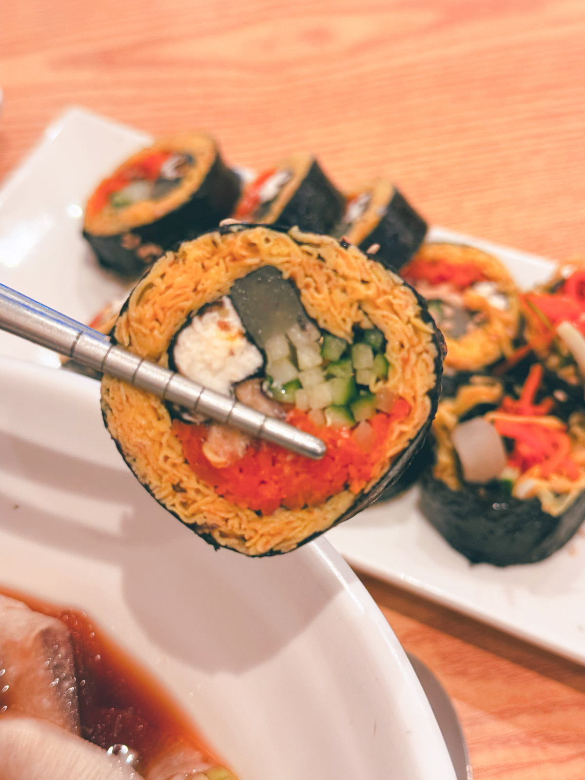 한줄 가격 6,500원인 바르다김선생 크림치즈 호두김밥은 쌀밥이 아닌 계란이 들어 있으며, 크림치즈와 함께 호두강정이 포함된 고단백질 식품으로 간헐적 단식을 하며 다이어트를 할 때 가장 먹기 좋은 요리라 할 수 있다.