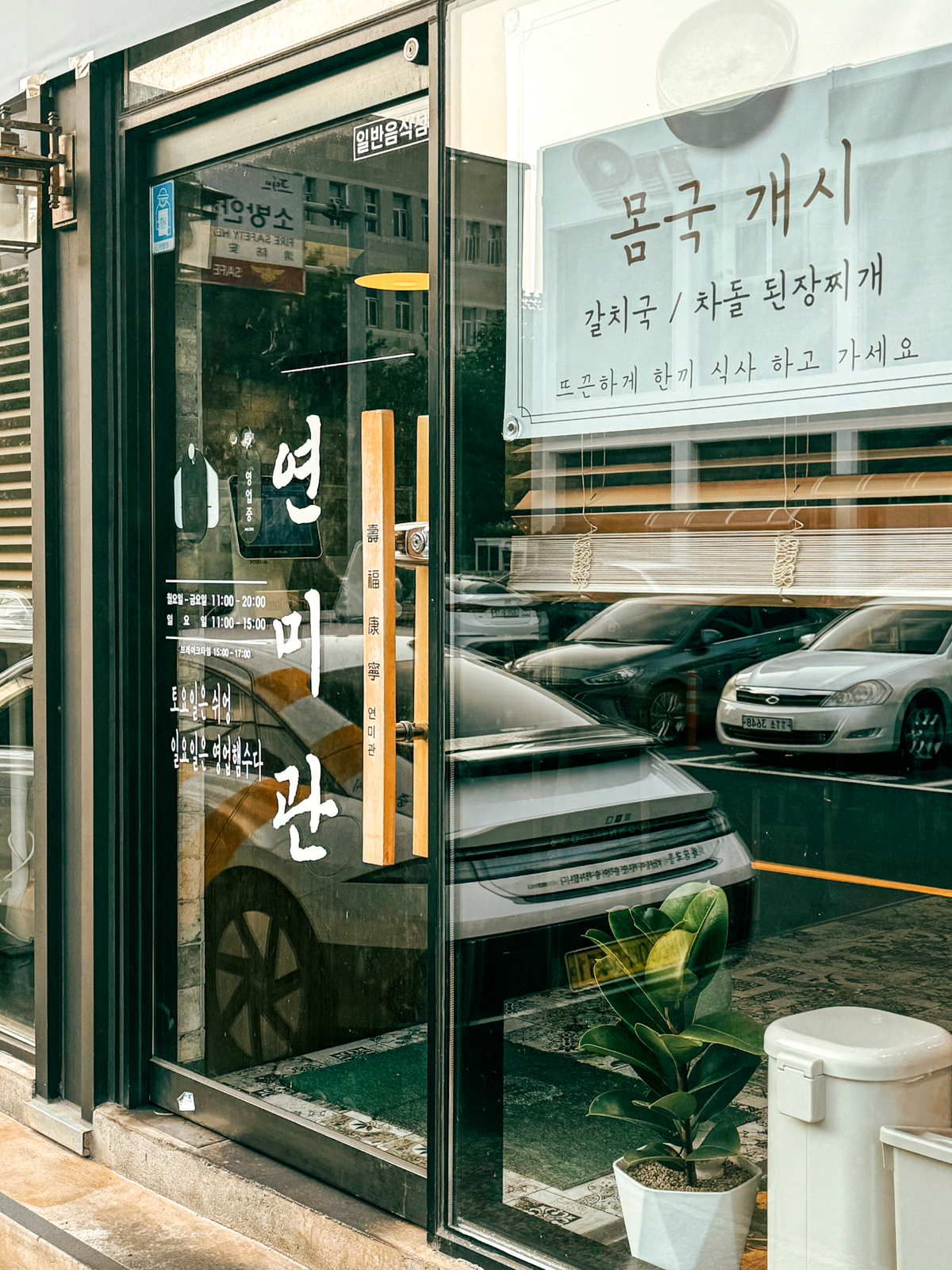 테이블마다 간격이 넓기에 다른 손님에게 방해받지 않고 점심 혼밥 식사를 하기에 최적의 환경을 자랑했고, 창가 자리에는 초록색 꽃화분을 두어 화사한 분위기도 느낄 수 있었다.
