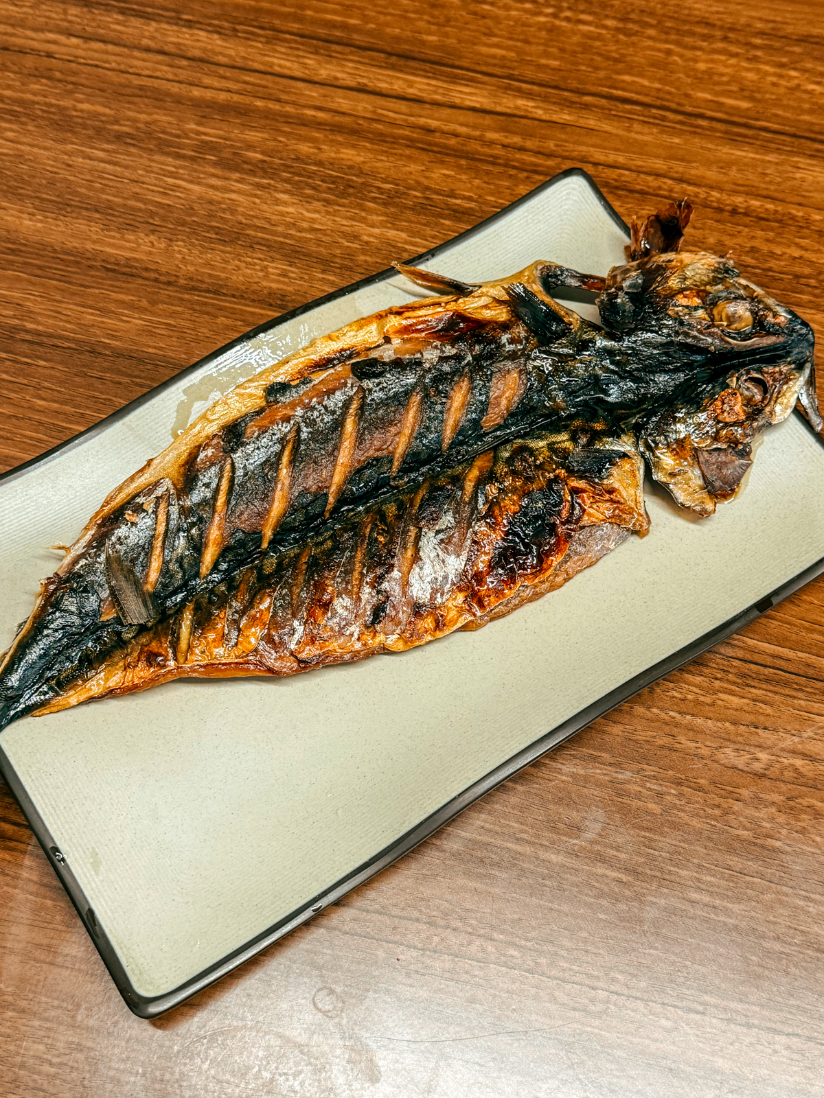 고등어구이는 혼자서 먹기에도 양이 매우 많은데 단백질, DHA, 오메가3가 풍부해 모자반과 마찬가지로 콜레스트롤 개선에 좋고 피로회복까지 적용되어 바쁜 일정으로 일을 하거나 여행을 하는 분들이 먹기 좋은 요리라 할 수 있다.