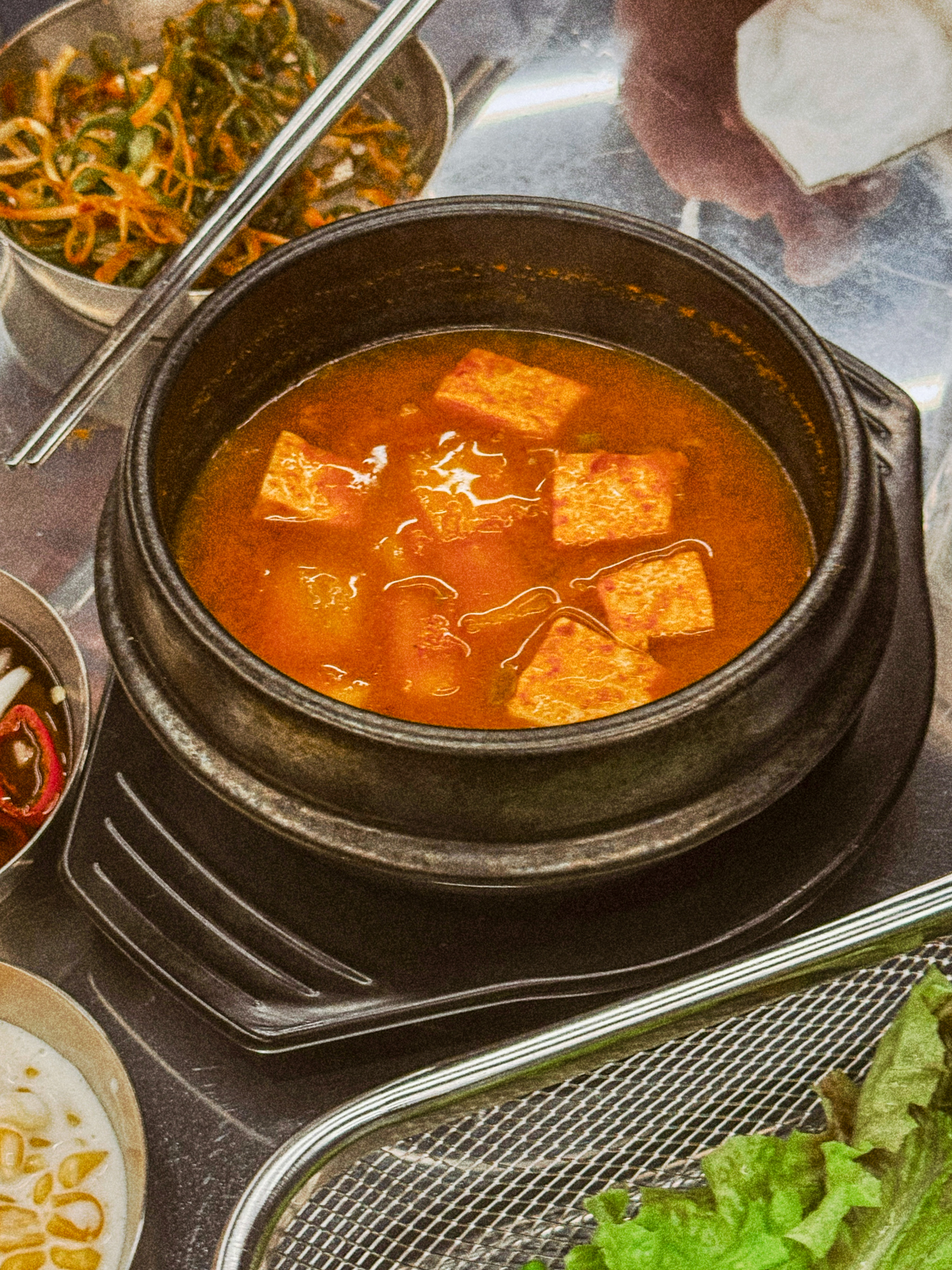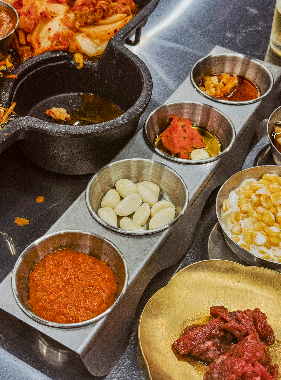 밑반찬과 함께 무한리필이 가능한 뚝배기 된장찌개가 나오고 이어 육회까지 맛볼 수 있다. 고기가 구워지는 동안 지인과 함께 육회에다가 술을 함께 먹을 수 있었는데 신선한 고기맛을 자랑했다.