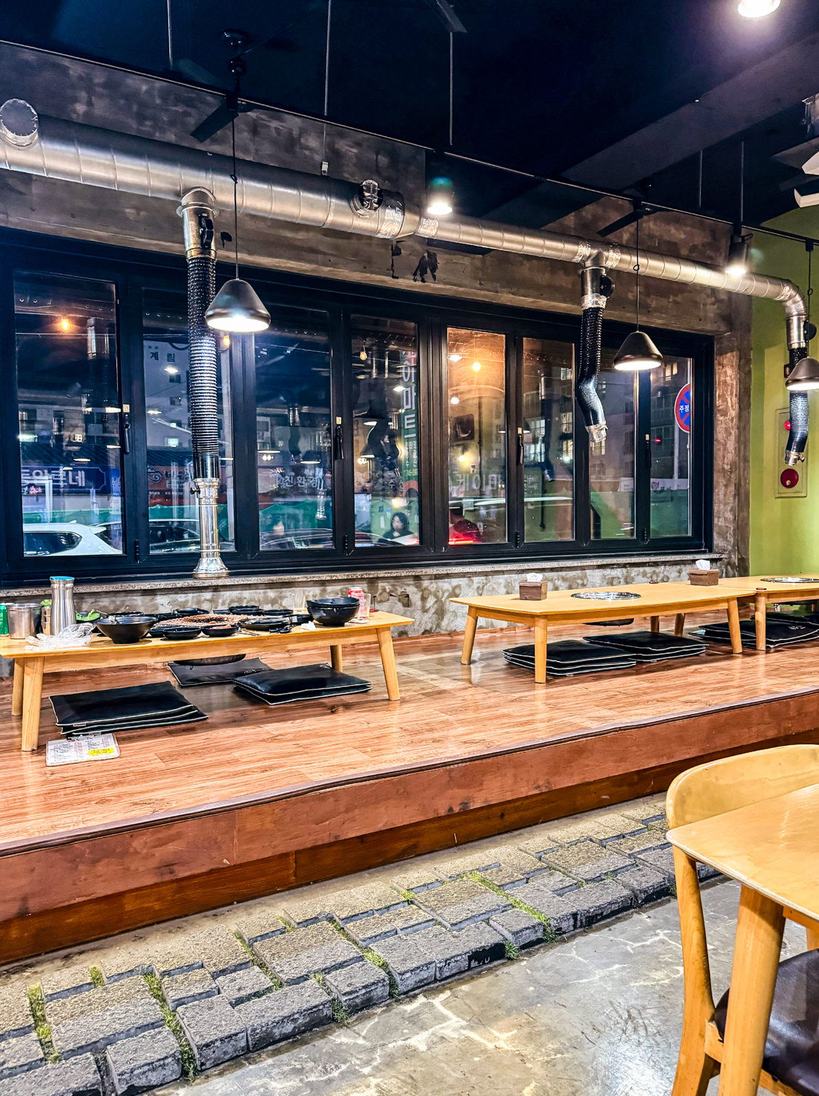 제주 노형 맛집은 최근 들어 흔히 보기 어려운 좌식테이블이 창가 자리에 마련되어 있으며 20여 명은 충분히 앉을 수 있는 공간으로 구성되어 있었다.