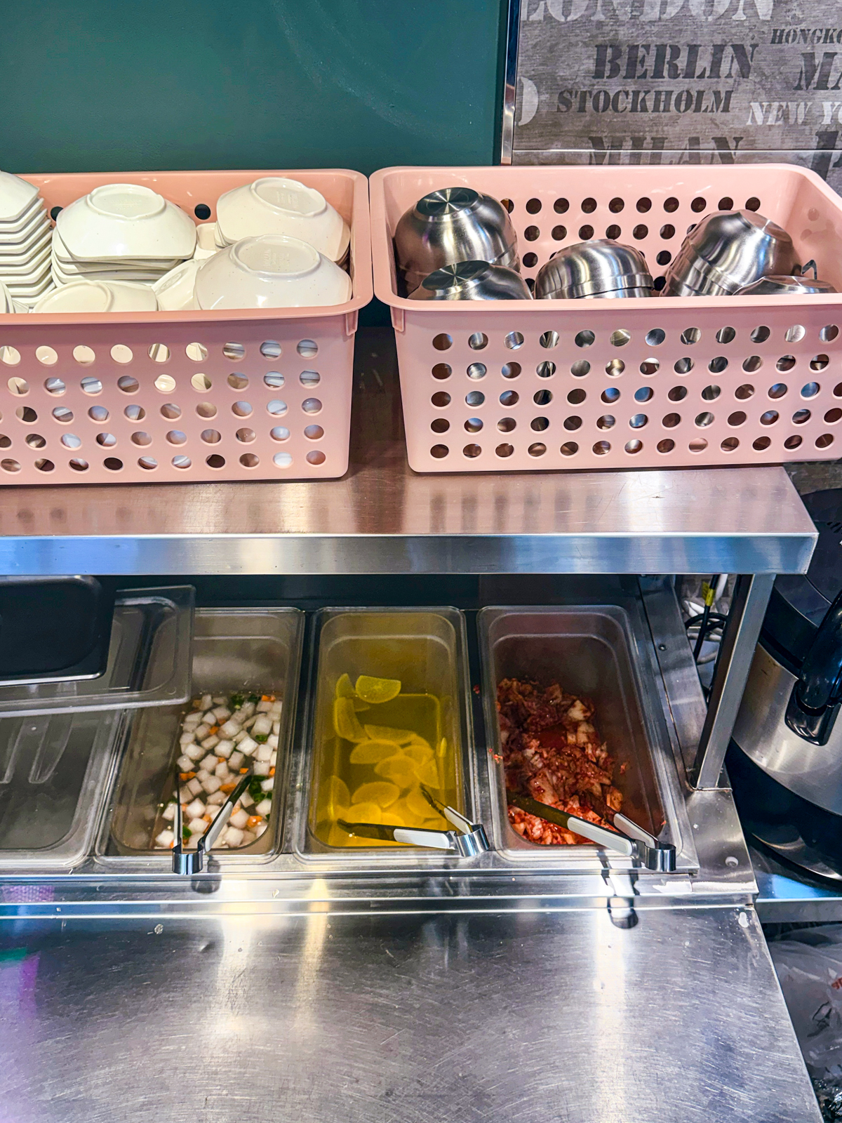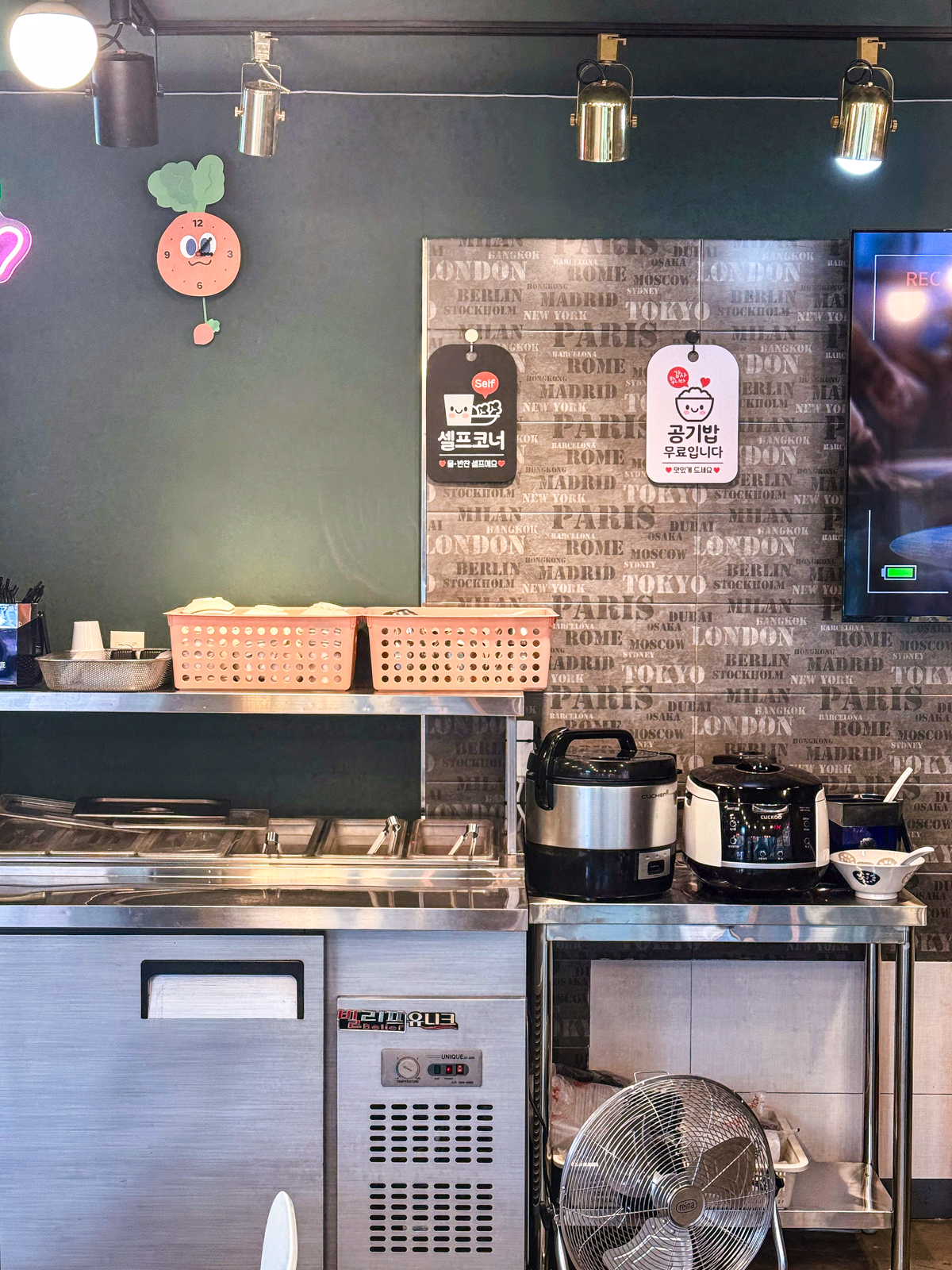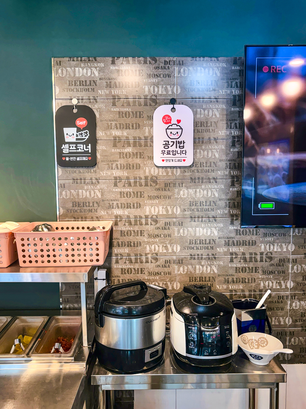 제주 노형 후난면가 헬로미식의 가장 큰 특징은 셀프코너로 치킨무, 단무지, 배추김치가 있었고 바로 옆에 있는 밥솥은 무제한으로 원하는 만큼 공기밥을 가져다가 먹을 수 있어 가성비 측면에서도 좋은 제주 쌀국수 맛집이었다.