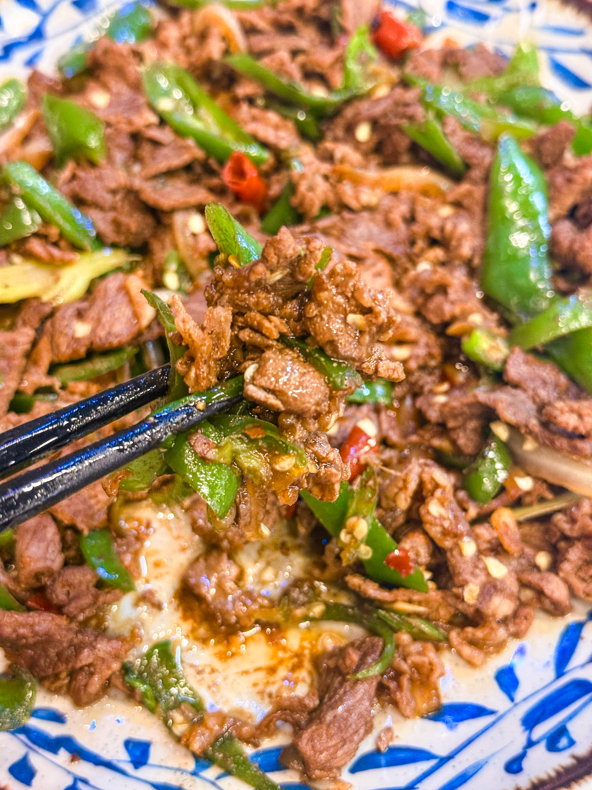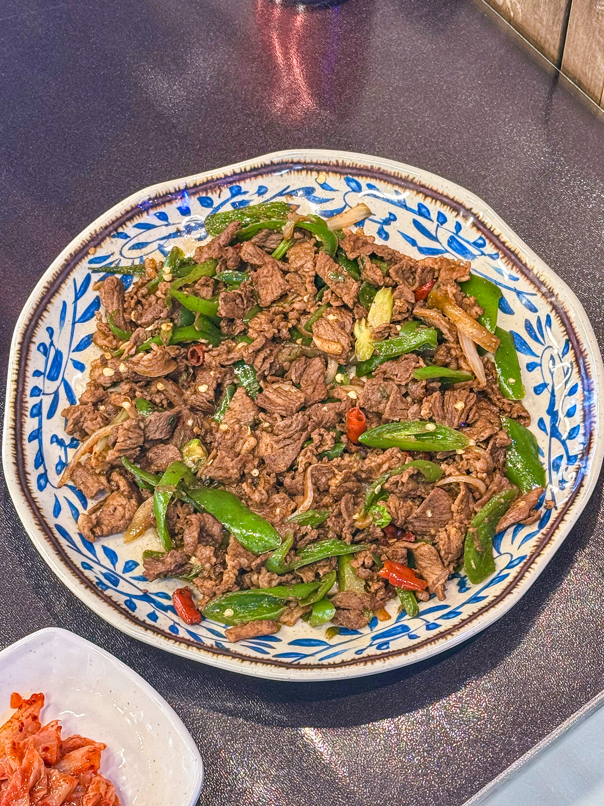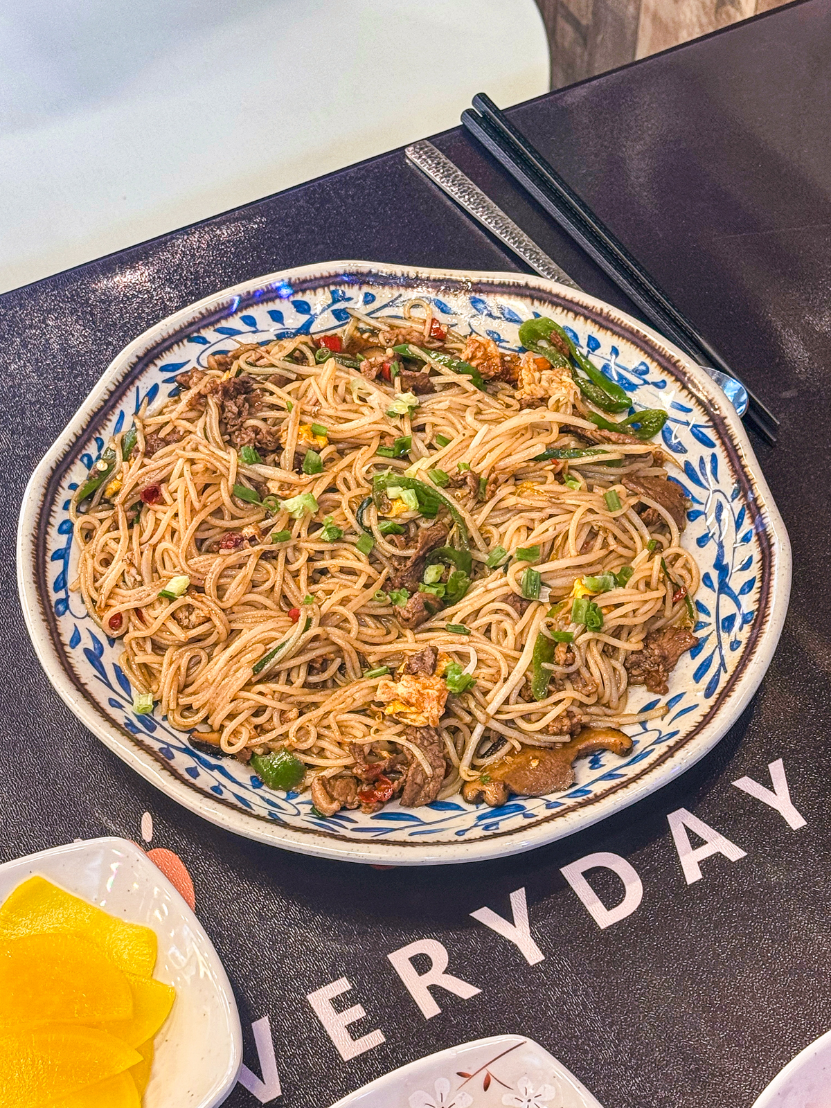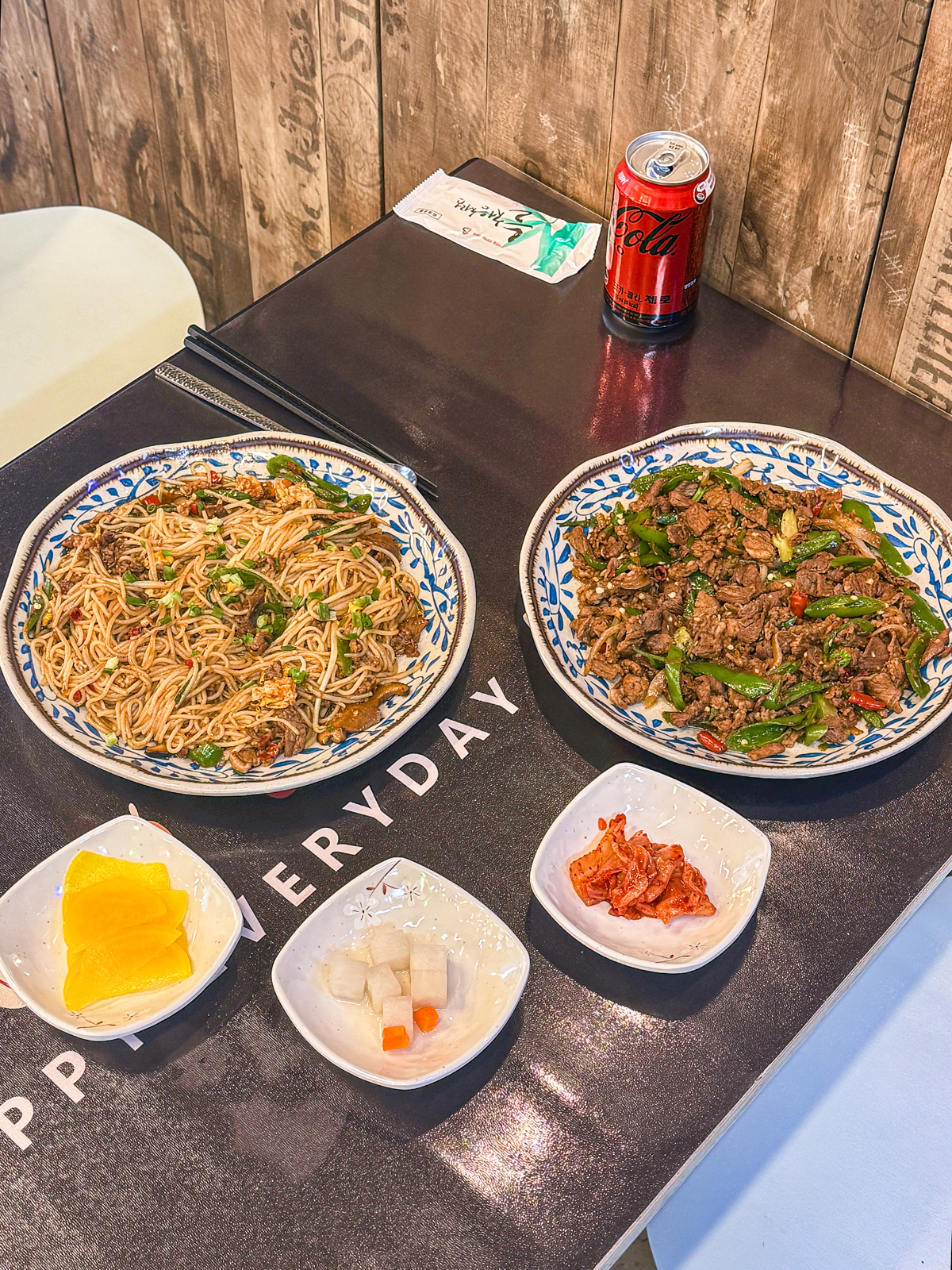 볶음쌀국수와 함께 직원 추천으로 주문한 소고기볶음에는 살짝 매운 고추가 들어 있었다. 부드러우면서 담백한 소고기에 아삭아삭한 고추 조합이 연태고량주를 부르게 만들 정도로 입맛에 맞아 다음에는 저녁시간에 재방문하고 싶었다.