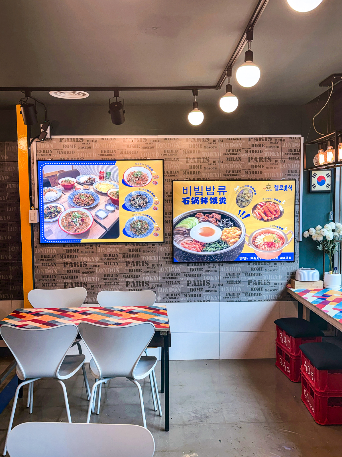 반대편에도 여러 명이 함께 쌀국수와 소고기볶음 등으로 식사할 수 있는 자리가 마련되어 있으며 한쪽 공간에 설치된 대형 TV를 통해 가요가 흘러나와 심심하지 않게 식사하기에도 좋았다.