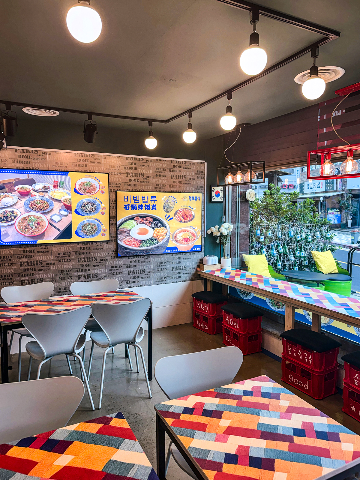 그랜드하얏트 제주 호텔에서 누웨마루거리로 가는 방향에 위치한 헬로미식은 볶음쌀국수, 소고기볶음, 비빔밥, 라면, 떡볶이, 만두 등 여러 음식을 내부에서 먹거나 포장할 수 있는데 혼밥하기에도 최적의 환경을 자랑했다.