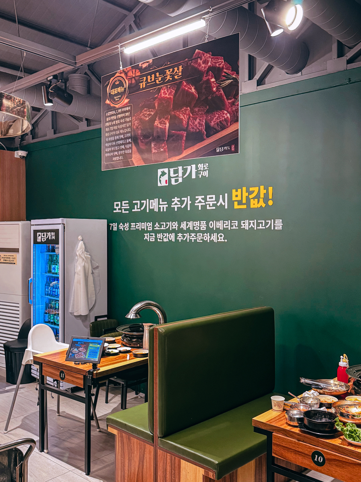 지인과 함께 제주 담가화로구이에 방문했던 날에는 큐브 눈꽃살 소고기, 마늘갈비살, 냉칼국수를 주문해 소주, 맥주에 곁들여 저녁식사를 했다.