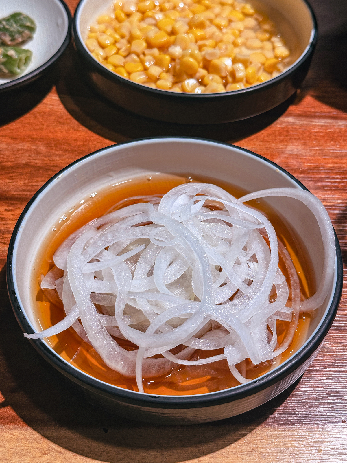 메뉴를 주문하면 기본 밑반찬으로 콘치즈, 고추장아찌, 파김치, 양파절임이 나오는데 하나같이 정갈하면서 깔끔한 맛으로 고기와 곁들이기 좋았다.