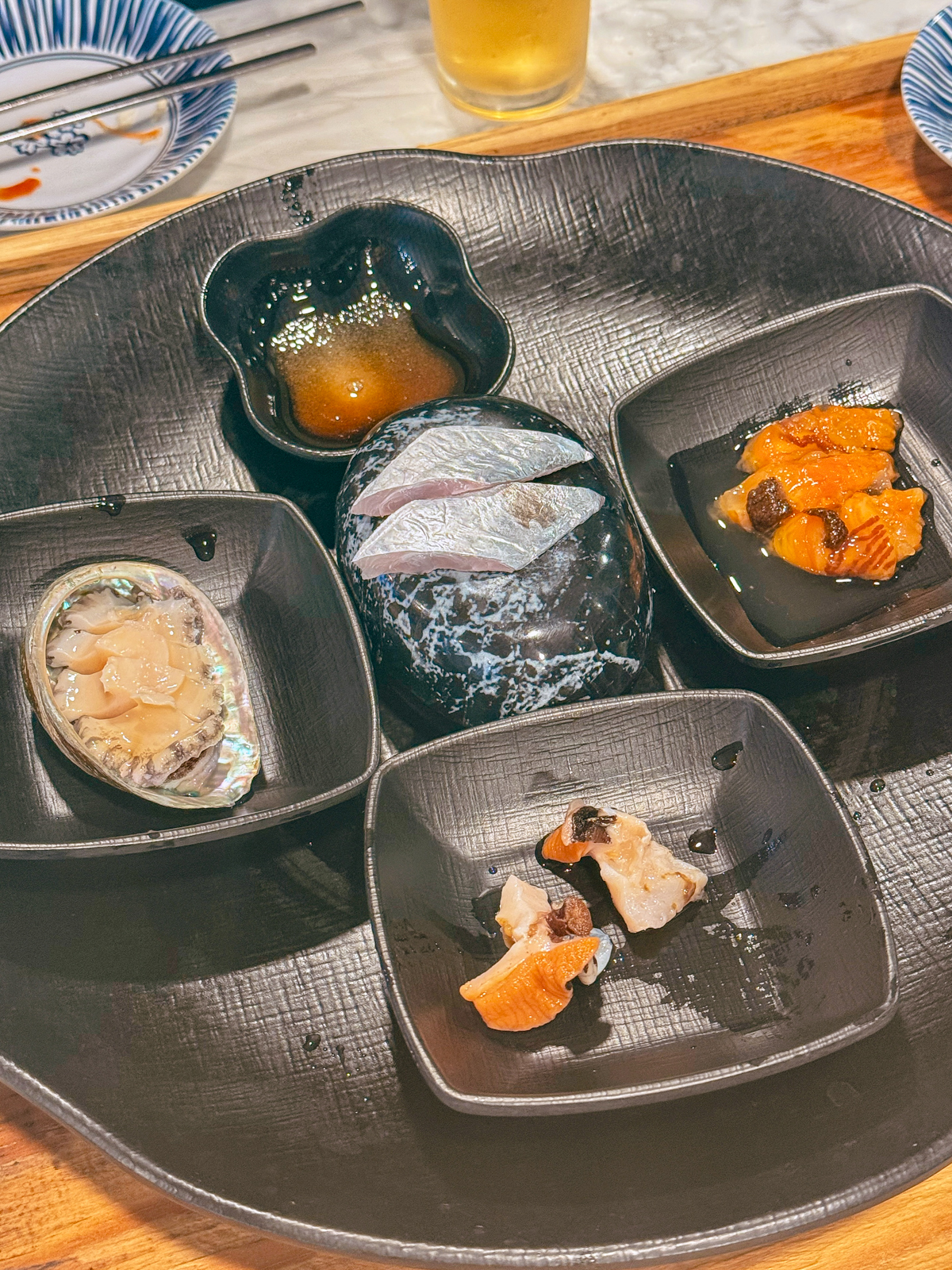 이어 해산물로 나온 뿔소라, 전복, 멍게, 갈치회 또한 가을 제철요리로 인원 수에 맞게 나왔으며 하나같이 신선한 맛을 자랑했는데, 낮 시간대 제주 용담해안도로 맛집에 가서 바다가 보이는 오션뷰 전망에서 해산물을 먹으면 더욱 분위기가 날 것 같았다.