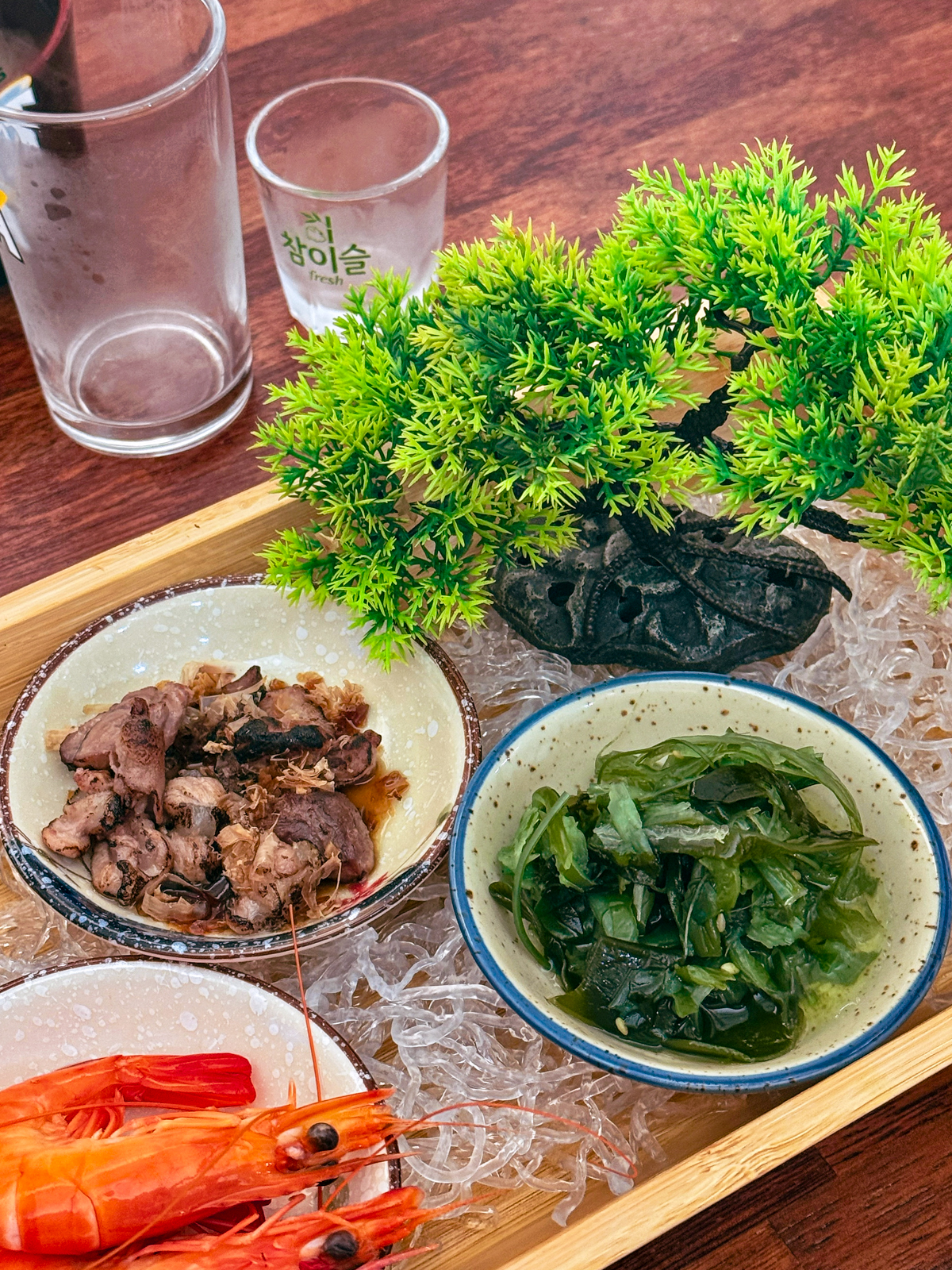 메뉴를 주문하고 기다리면 아홉 가지로 구성된 참치회와 함께 밑반찬으로 다양한 나물 요리와 밑반찬이 나오는데 하나같이 깔끔한 맛을 자랑했고 양이 모자라면 언제든 요청해 리필을 받을 수 있다.