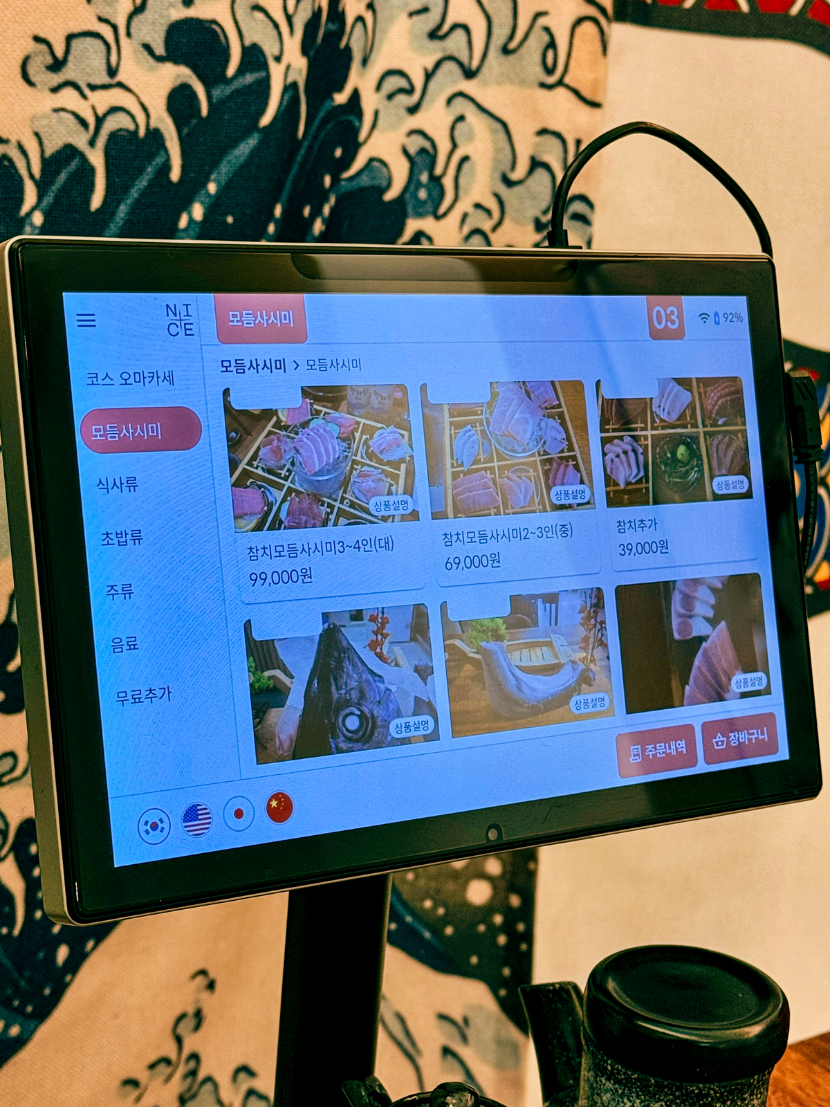 테이블마다 키오스크와 함께 호출벨이 설치되어 있어 참치회를 먹다가 모자란 밑반찬이나 추가 메뉴를 편하게 주문할 수 있다는 점도 장점이다.