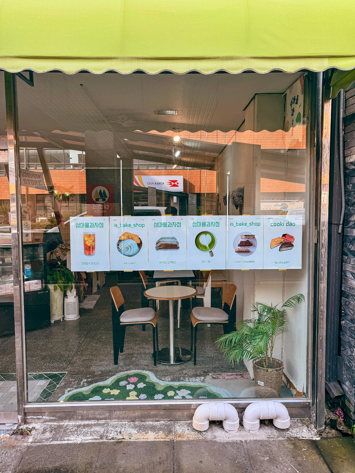 3년 넘게 운영되고 있는 제주 디저트 맛집 섬마을과자점은 입구 옆에 이곳에서 주문할 수 있는 디저트 메뉴에 대한 내용이 담긴 포스터를 볼 수 있다.