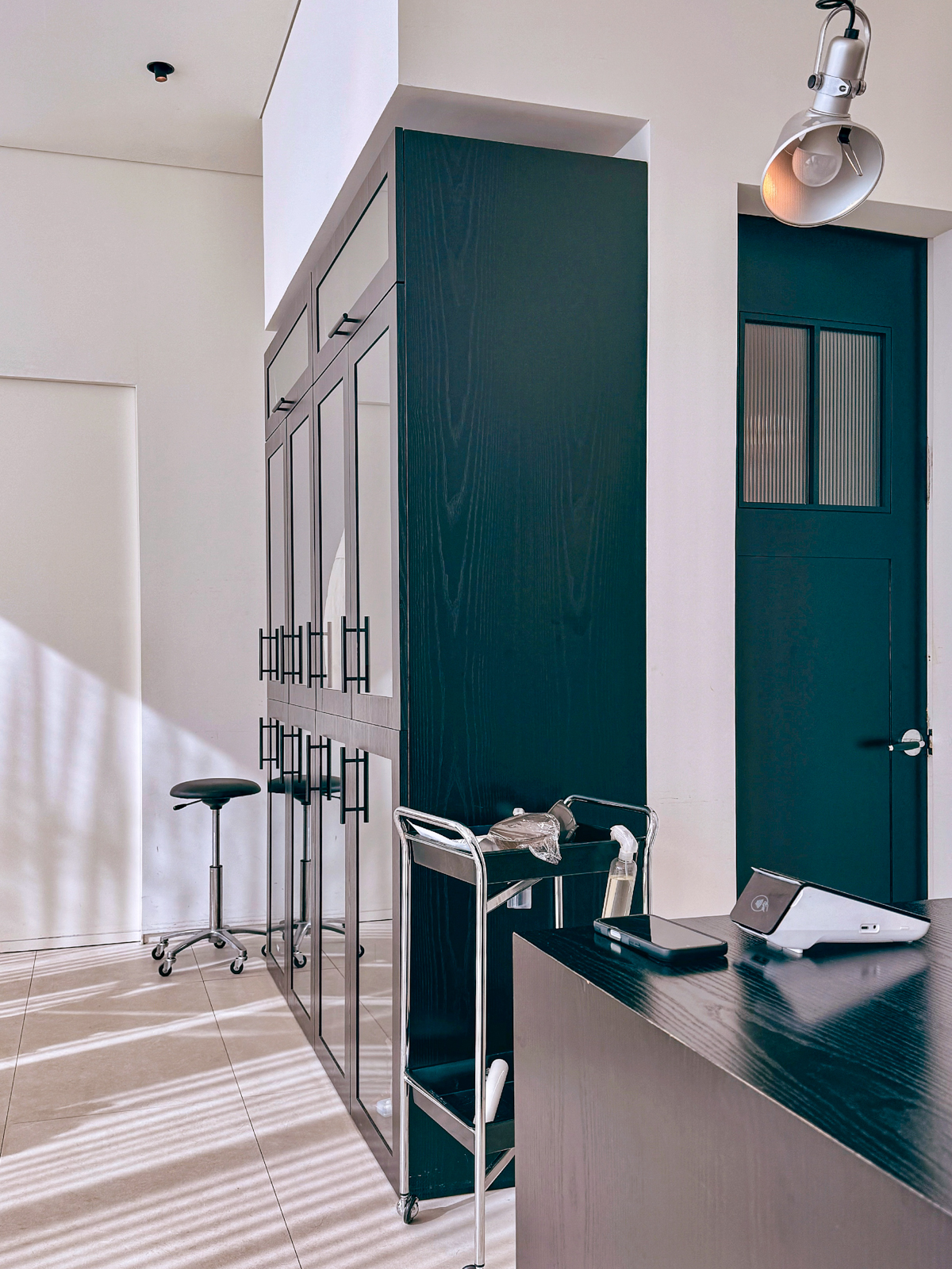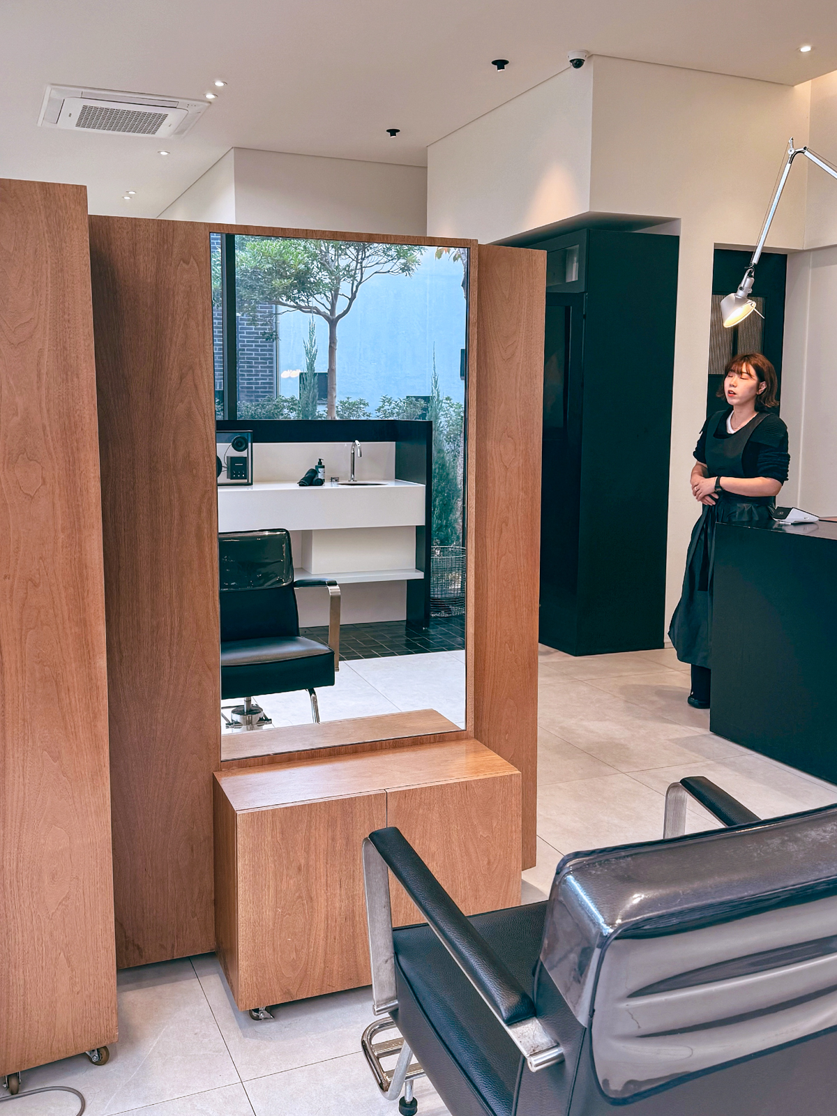 예약 후 첫 방문했던 제주시 미용실 컨셉은 외부에서 보이는 것처럼 내부 또한 전체적으로 깔끔한 분위기를 자아냈다. 보통 미용실에 가면 여러 헤어제품을 진열장에 두어 지저분하지만 이곳은 자리마다 따로 두는 것 없이 깨끗해 위생적인 측면에서 매우 훌륭해보였다.