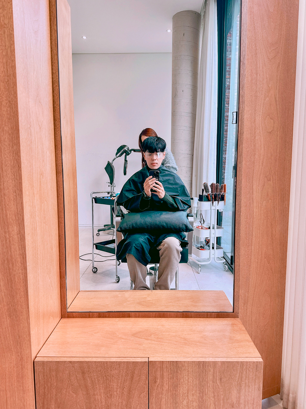 헤어펌을 받기 전에는 담당 디자이너 선생님이 직접 외투를 보관해주고, 옷에 약품이 묻지 않게 검정색 가운을 입혀준 뒤 자리까지 안내해주는 등 처음부터 친절함이 느껴졌다.