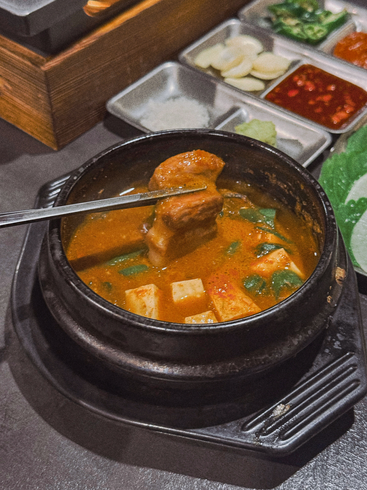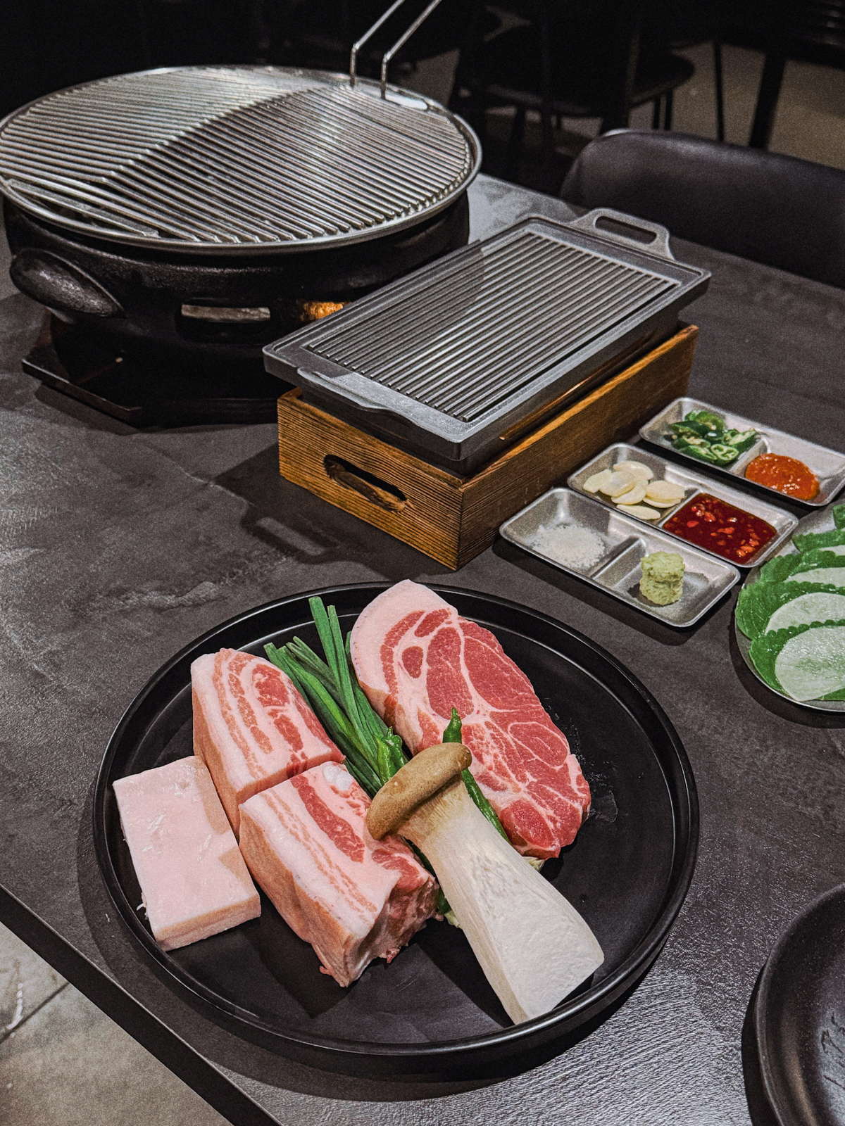이와 함께 소금, 와사비, 젓갈, 생마늘, 청양고추 등 고기와 함께 곁들이기 좋은 여러 소스도 나온다.