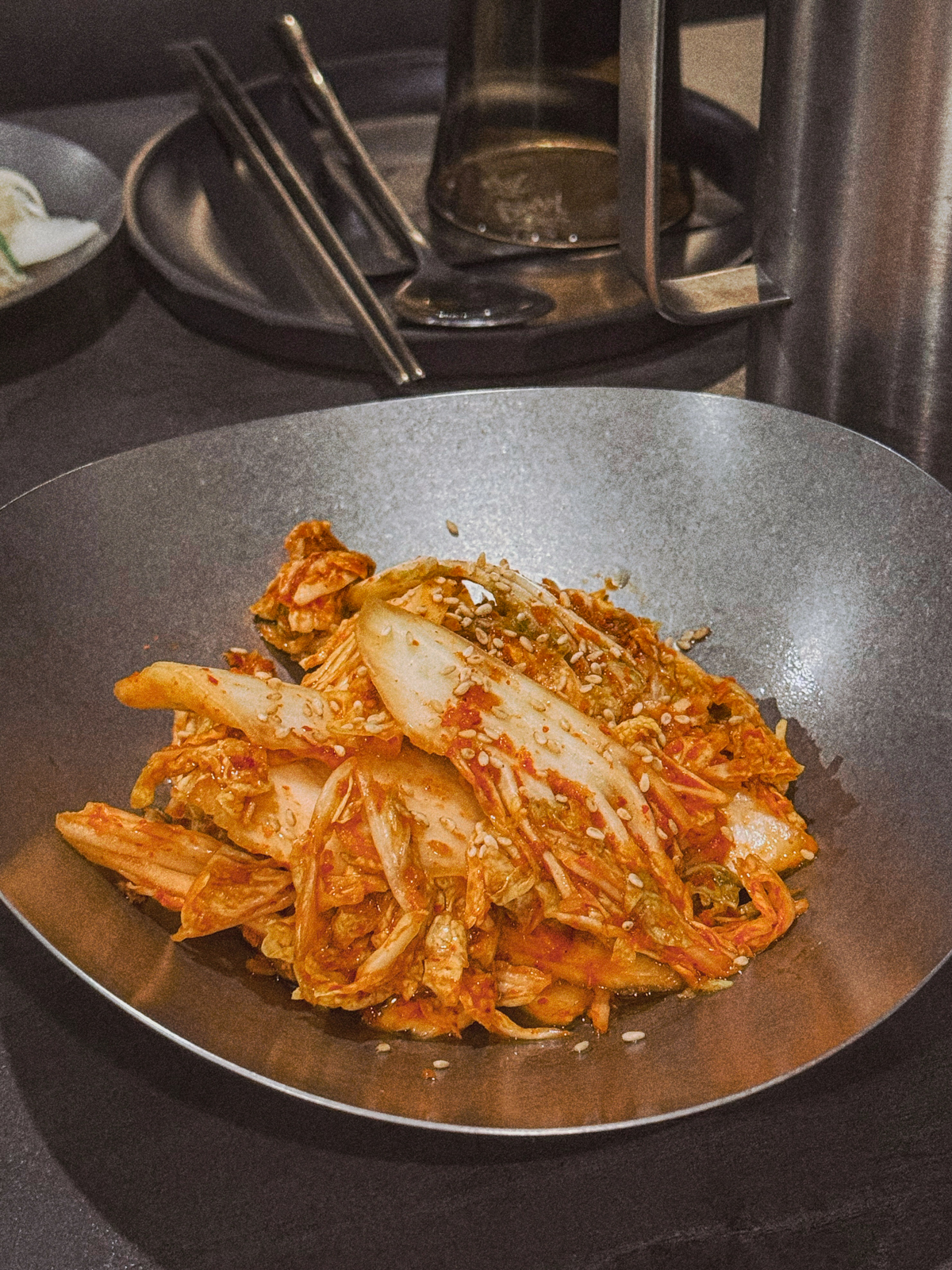 제주공항 근처 흑돼지 맛집에서 고기를 주문하고 기다리면 이곳에서 직접 만든 여러 밑반찬이 먼저 나온다. 깻잎 무쌈, 명이나물, 양파절임과 함께 겉절이도 나오는데 김치가 정말 맛있었다.