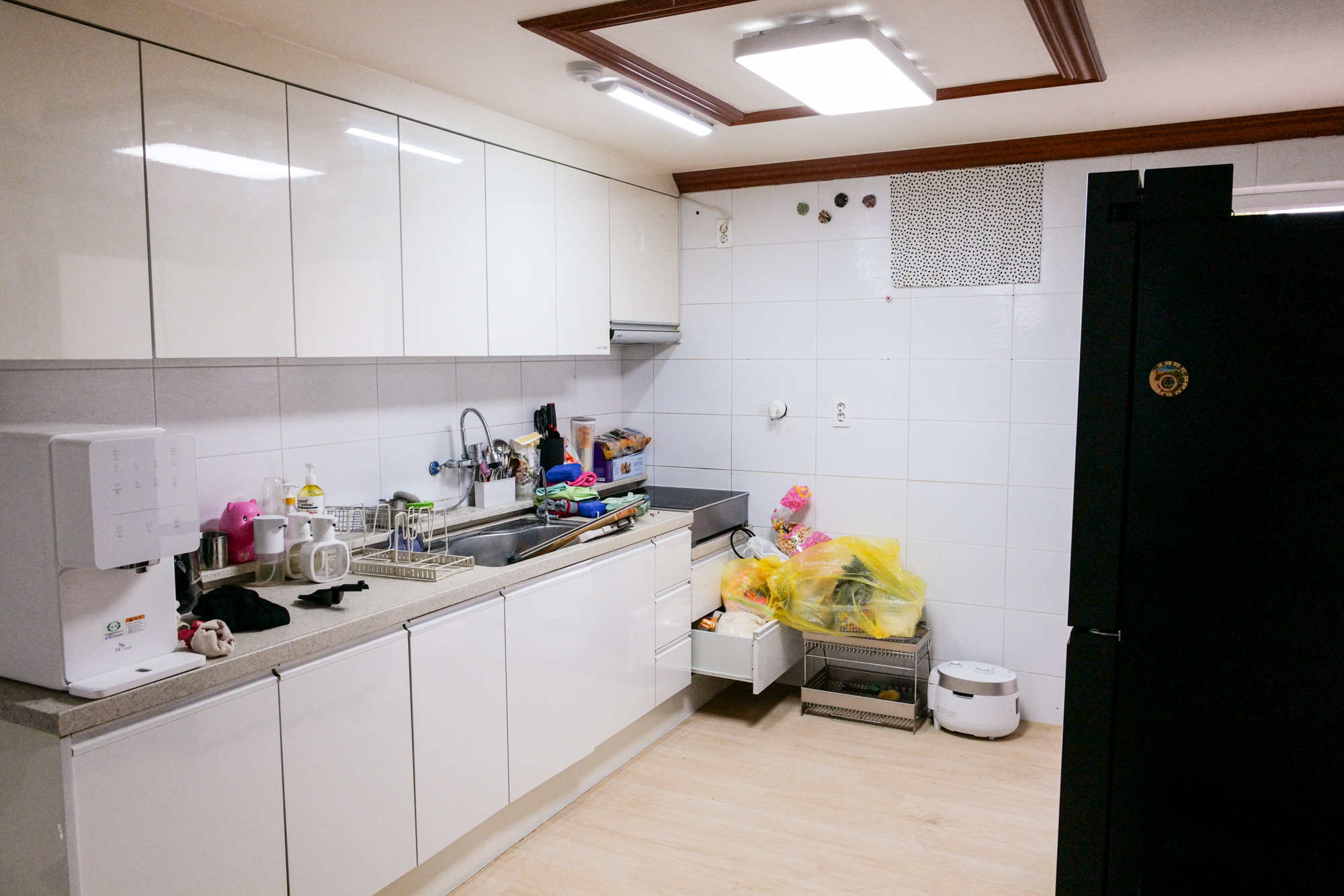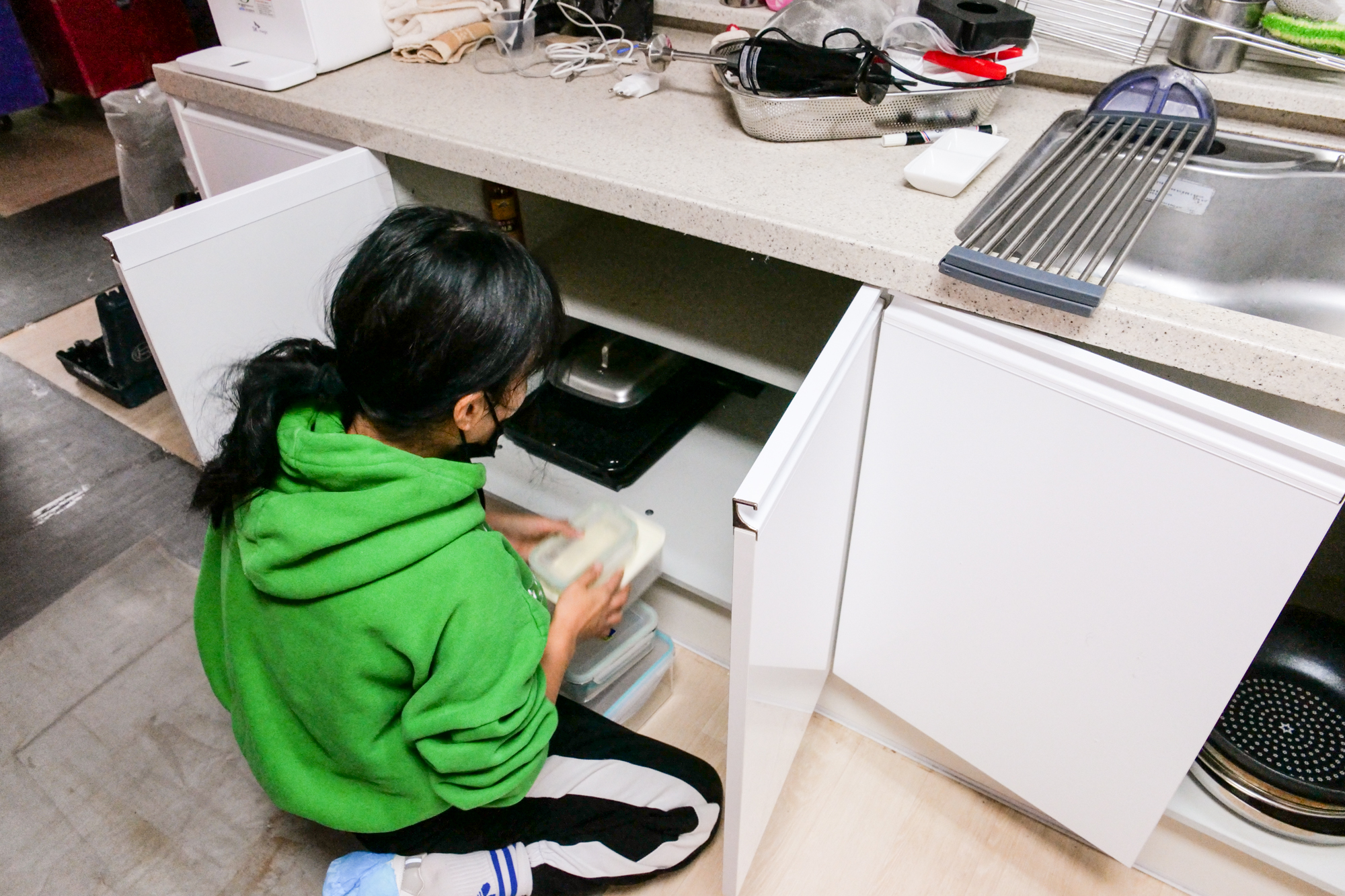 여성 전담팀이 따로 배정되어 싱크대 선반에 둘 유리잔, 그릇, 식기 등을 모두 깔끔하게 진열했고 냉장고에 있었던 음식 또한 상하지 않고 빠르게 넣어주셨다.