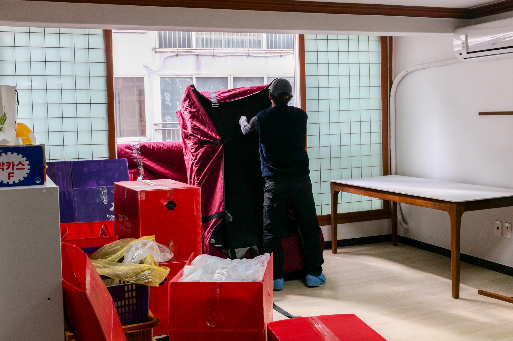 서울에서 제주 포장이사로 가지고 온 이삿짐은 순서에 맞게 사다리차를 활용해 창문 베란다로 짐을 옮기는 작업부터 진행됐다. 여러 명의 기사님들이 오셔서 순차적으로 짐을 꺼낸 뒤에는 카테고리별로 분류하여 원하는 위치에 진열해줬다.