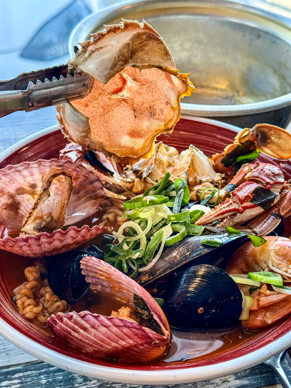 본격적으로 제주 해물라면을 먹어보기 전에는 라면 속에 들어간 해산물을 모두 발라내고 통문어를 가위와 집게를 활용해 먹기 좋은 크기로 잘랐다.
