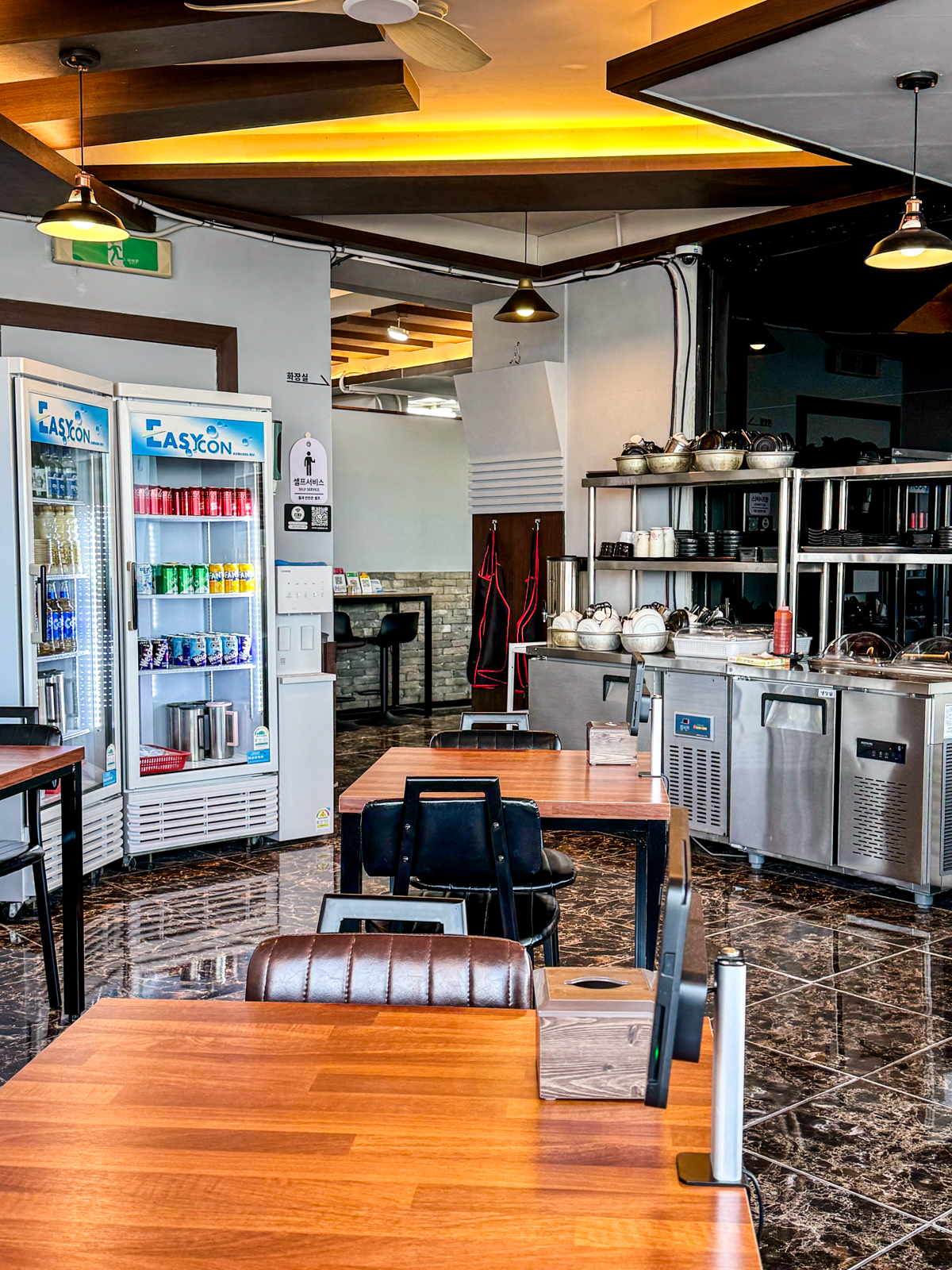 마루해물라면 내부로 들어가면 사장님과 직원 분이 먼저 인사를 하며 반갑게 맞이해주었고 자리 안내까지 꼼꼼했다. 바다가 보이는 오션뷰 전망으로 들어가는 길에는 따뜻한 온기가 느껴지는 공간이 있었으며 여러 명이 함께 가서 해물라면을 먹기에도 좋아보였다.