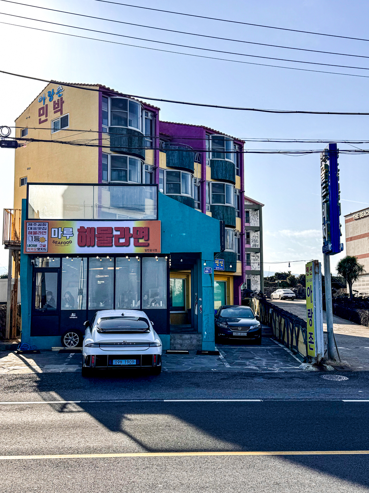 지난 수요일 아침 제주 용담해안도로에서부터 도두봉이 있는 무지개해안도로까지 바다를 보며 드라이브를 하다가 어영공원 근처에 위치한 마루해물라면을 찾았다.