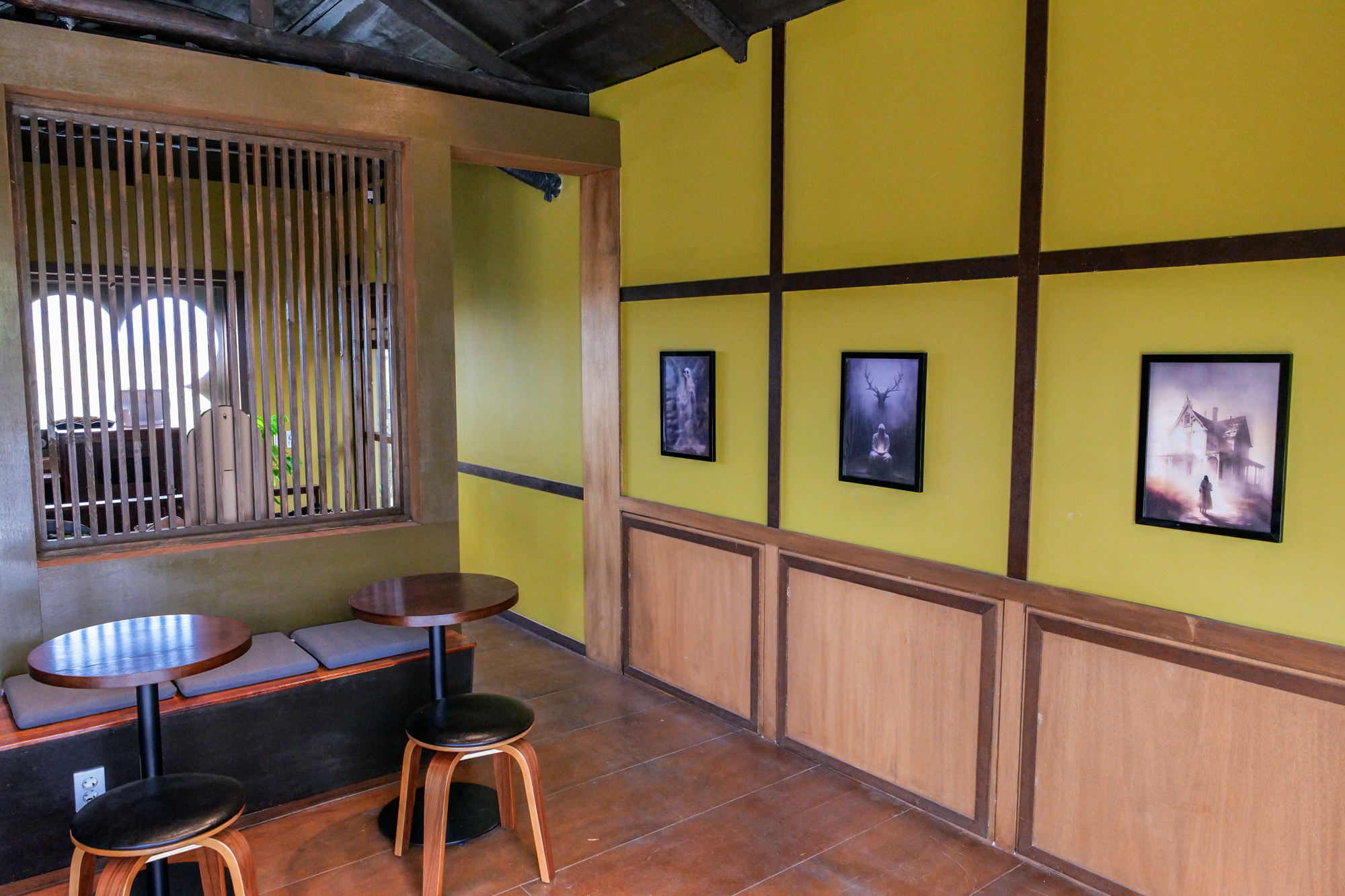 이곳은 유령 테마를 컨셉으로 내부가 꾸며져 있으며 1인 기준 가격 1~2만 원대로 VR, 체험, 음료, 디저트를 모두 이용할 수 있으며 으스스한 분위기를 자아내는 공간에서 사진도 찍을 수 있게 촬영소품도 마련되어 있다.