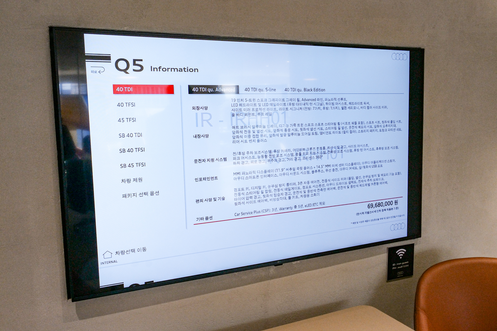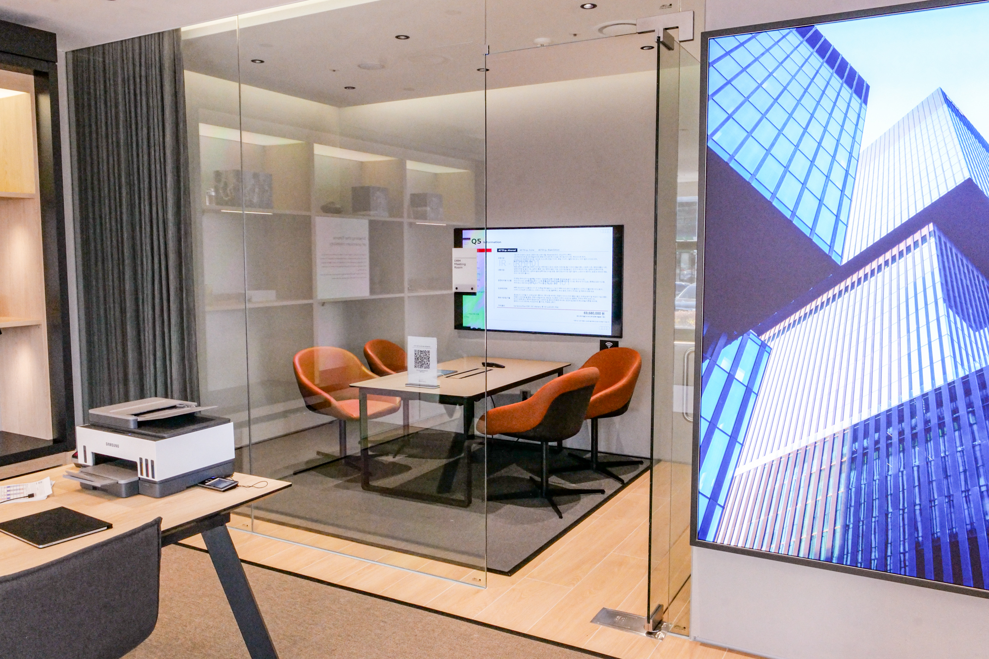 제주 아이언오토 아우디 전시장에서 자동차 시승을 하기 전에는 공식 딜러의 안내에 따라 내부 회의룸에 들어가서 예약 확인 및 상담을 진행했다.