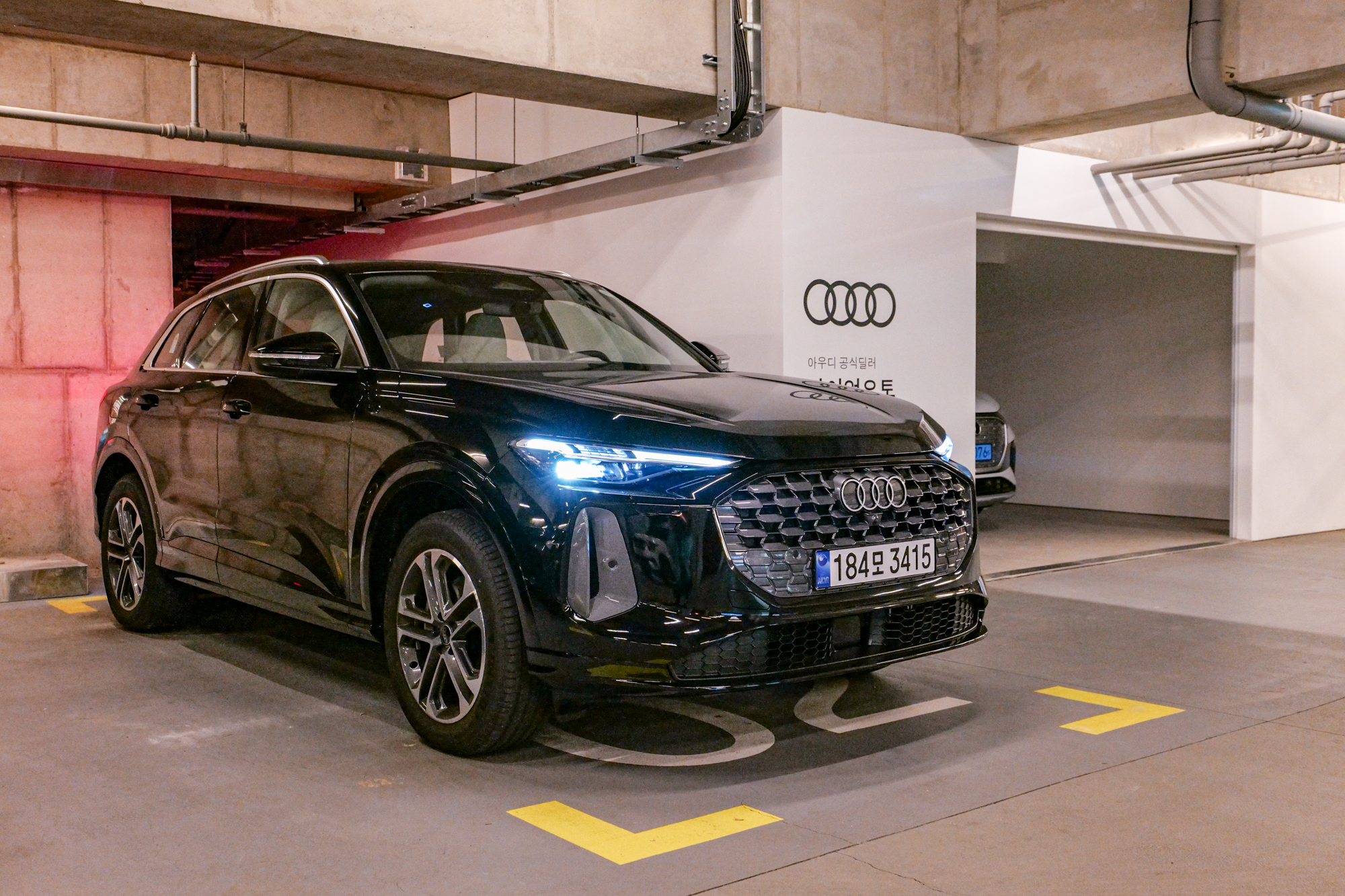 아이언오토 전시장 지하 1층에 세워진 아우디 Q5 45 TFSI 콰트로 스포트백 모델은 블랙 에디션으로 외관부터 남다른 디자인을 뽐내고 있었다.
