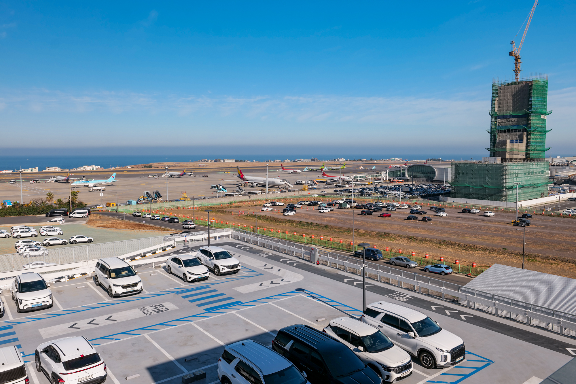테라스에서는 제주공항과 주차장이 한눈에 보이며 바로 옆에 위치한 제주공항 렌트카의 모습도 함께 만나볼 수 있었다. 이날 날씨가 무척 좋아 사진이 무척 선명하게 나왔는데 탁 트인 전경을 보니 시원스러운 느낌을 받았다.
