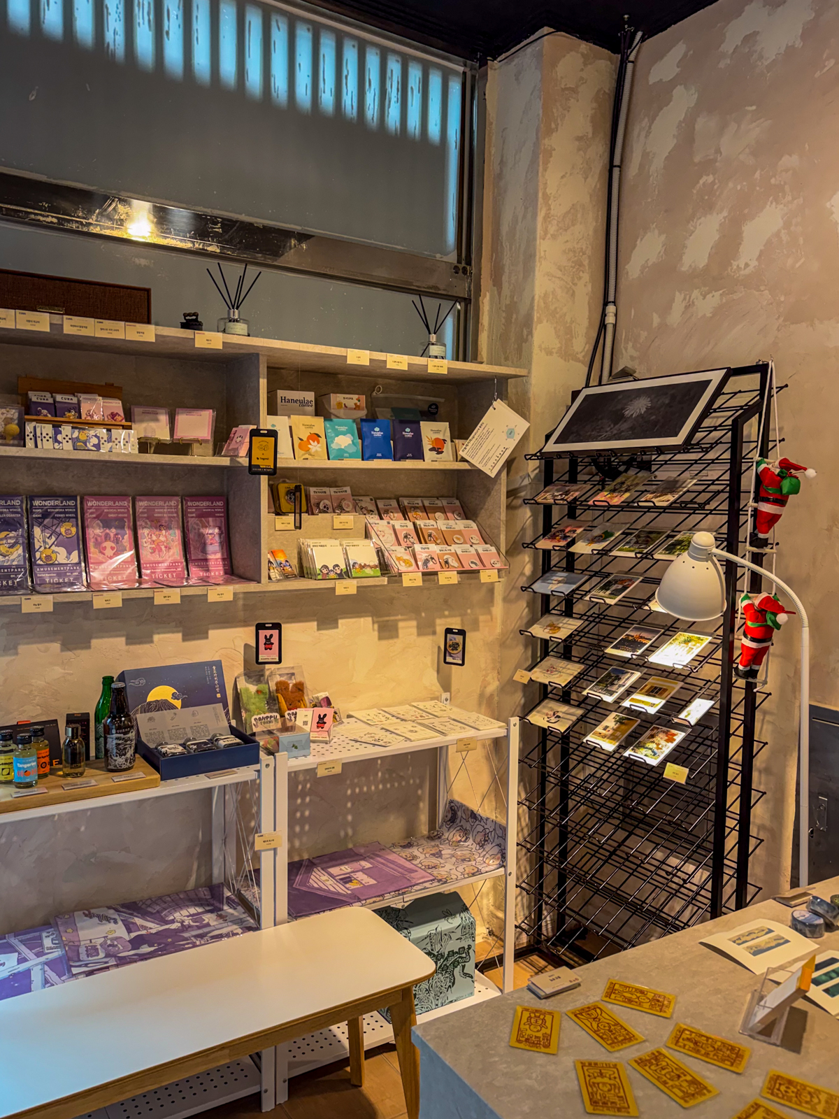 보름달 팬케이크, 푸딩토스트, 베이컨 샐러드, 계란빵 등 여러 메뉴가 있으며 매장 내부에는 다양한 기념품과 전통주도 구경하며 필요에 따라 구매도 할 수 있게 운영되고 있었다.