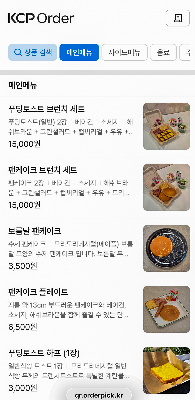 메인 메뉴로는 푸딩토스트 브런치 세트, 팬케이크 브런치 세트, 보름달 팬케이크, 팬케이크 플레이트, 푸딩포스트가 있으며 전체적으로 가격대가 비싸지 않아 부담없이 먹기 좋았다.