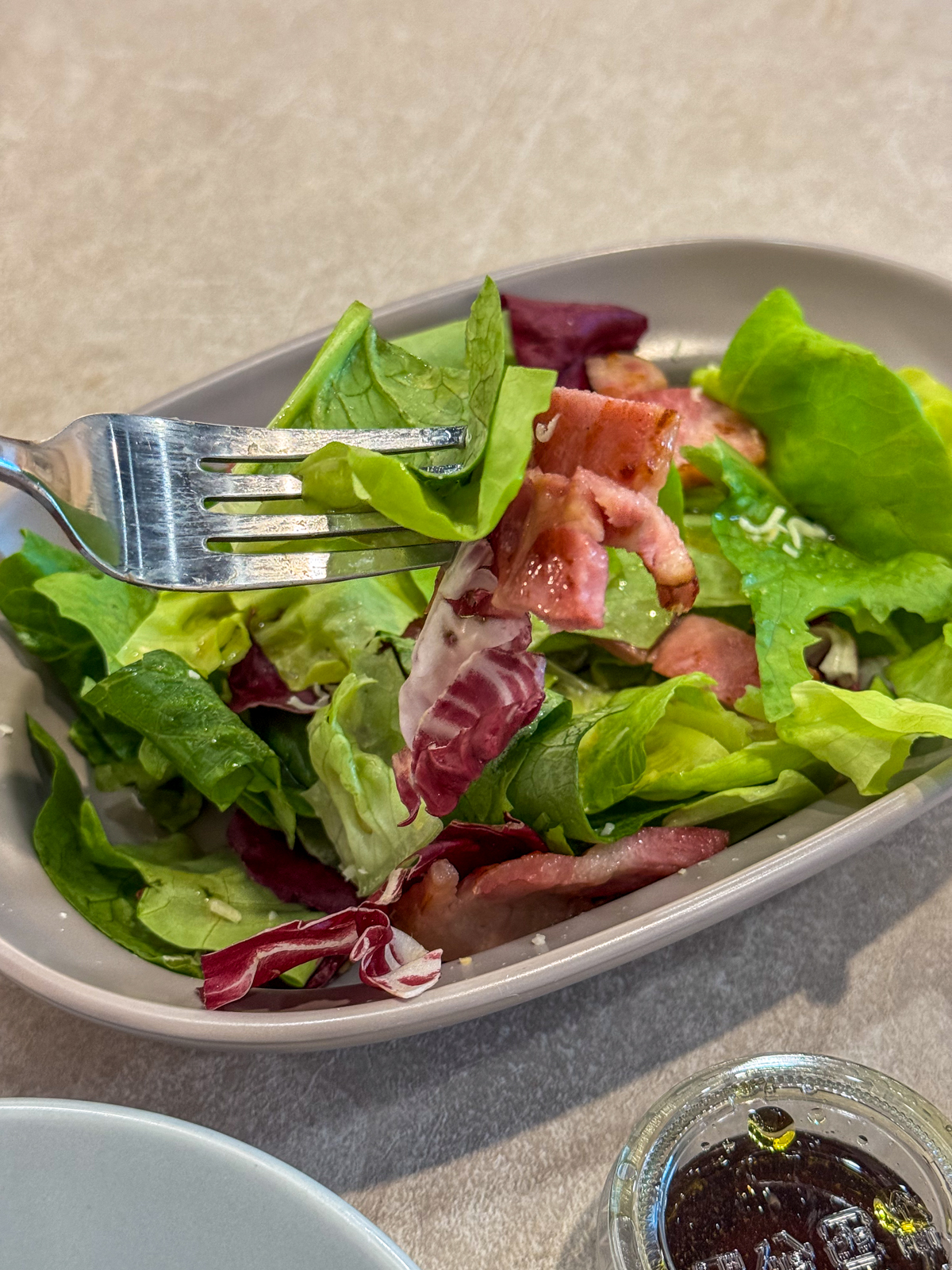 팬케이크, 토스트와 함께 제주공항 브런치로 주문했던 샐러드에는 두툼한 베이컨이 푸짐하게 들어 있었고 오리엔탈, 레몬홀그레인 수제 드레싱 중에 하나를 선택할 수 있다.
