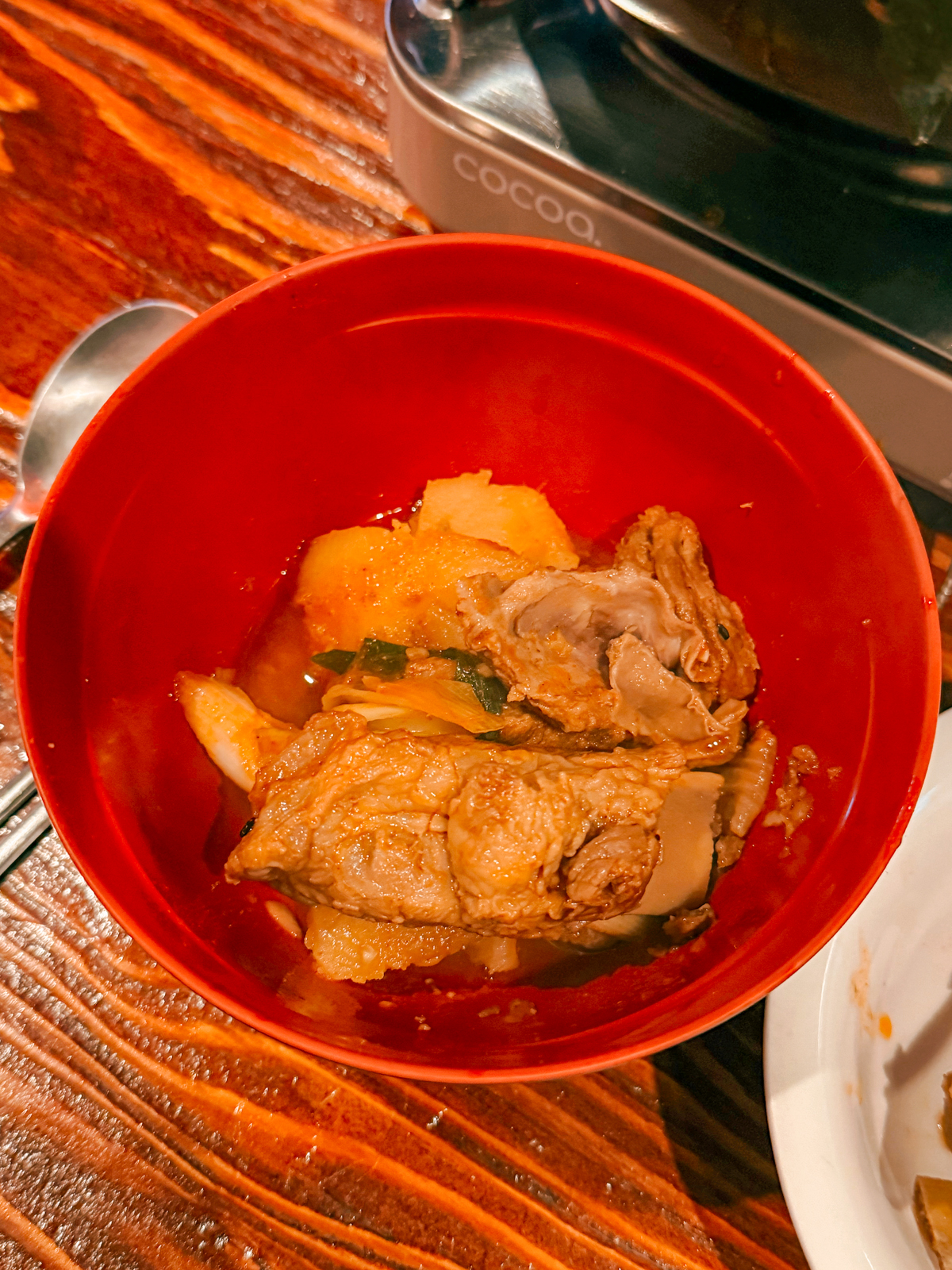 버너를 활용하여 조금 더 익힌 후 빈그릇에 담아 먹은 돼지갈비볶음탕은 달달하면서 매콤한 맛으로 이전에 갔을 당시에도 지인들이 하나같이 맛있다고 극찬할 정도다.