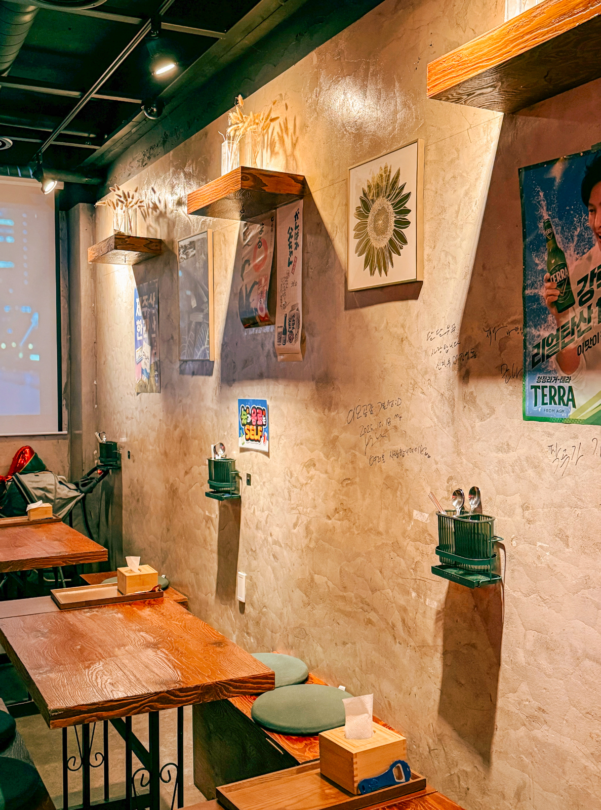 제주 노형 술집 달달부엌은 오랜 시간 장사를 한 사장님이 직접 운영하고 있는 곳으로 내부는 따뜻하게 히터가 틀어져 있어 포근한 분위기에 머물며 식사나 술을 마실 수 있다.