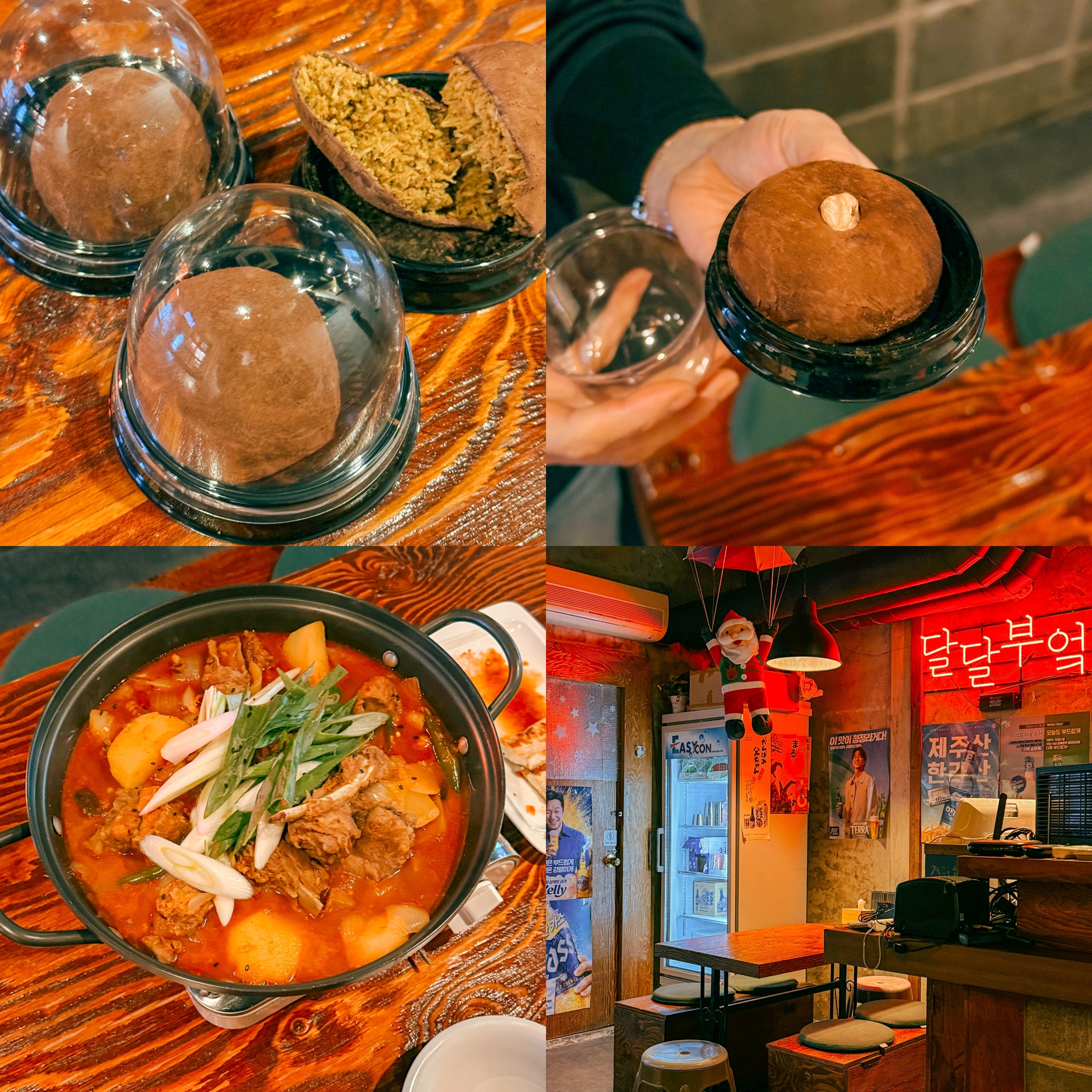 제주 두쫀쿠 맛집 달달부엌 돼지갈비볶음탕은 뼈에 붙은 살코기가 잘 떨어지는 돼지갈비에 감자, 버섯, 양파 등이 푸짐하게 들어 있고 2~3인이 먹기에도 충분할 정도의 양을 자랑한다.