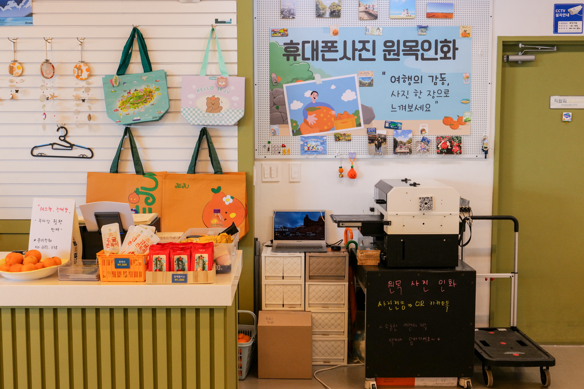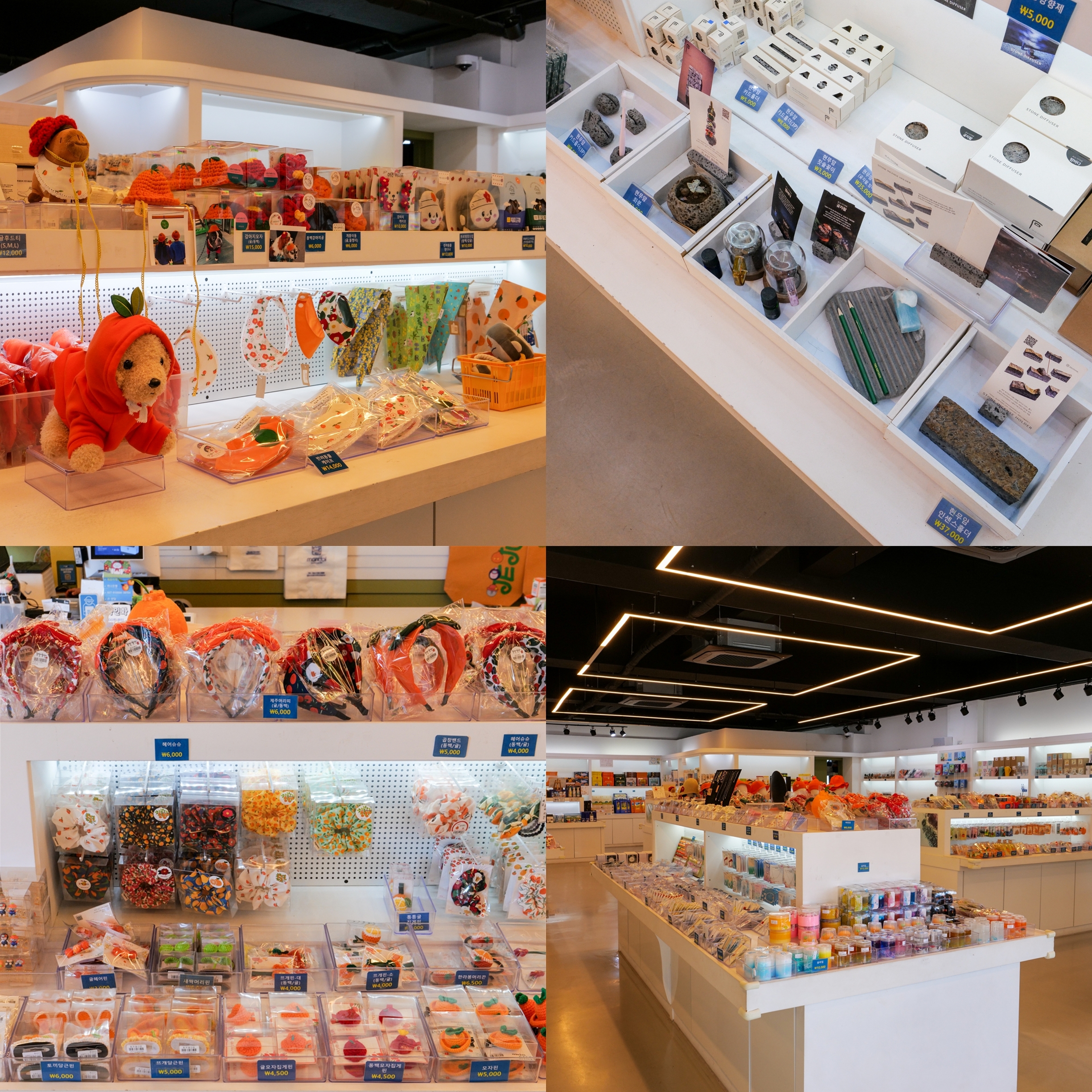 카운터 앞에는 여성 분들이나 아이들이 착용하기 좋은 다양한 패션 악세사리도 진열장을 가득 채울 정도로 가득했는데 당근, 감귤 등 제주를 테마로 한 머리핀과 함께 액체괴물 슬라임도 눈에 띄었다.